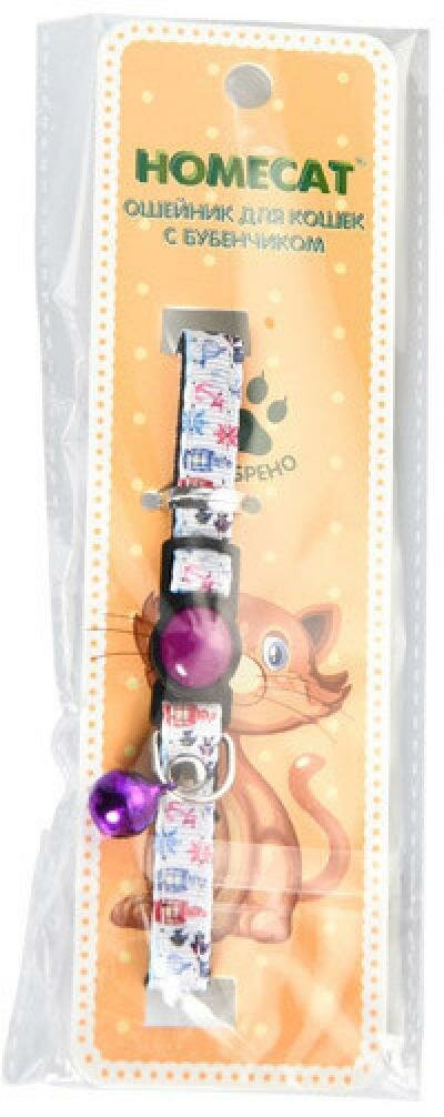 Ошейник для кошек с бубенчиком HOMECAT разработан с учётом анатомических особенностей котов и кошек. На ошейнике есть бубенчик, что сделает вашего питомца более заметным. Отстёгивается ошейник одним нажантием на кнопку пластикового карабина. Длинна ошейника регулируется от 20 до 30см.