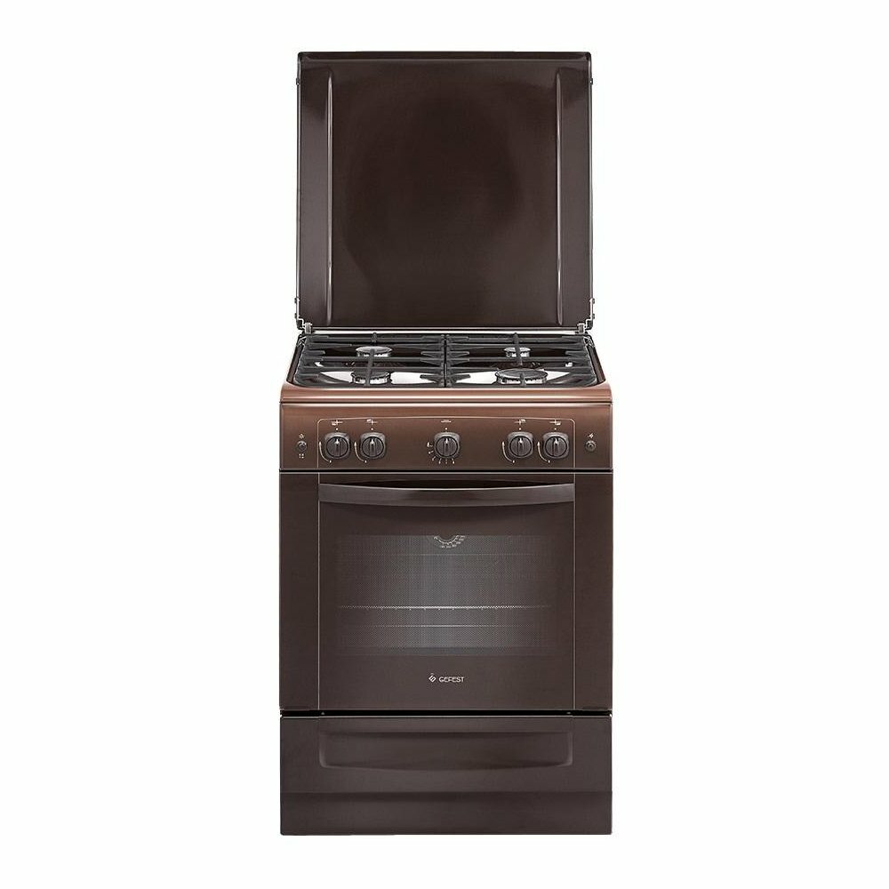 Плита газовая Gefest ПГ 6100-01 0301 коричневый, отдельностоящая, газовых конфорок 4, духовка: газовая, объем духовки 52л