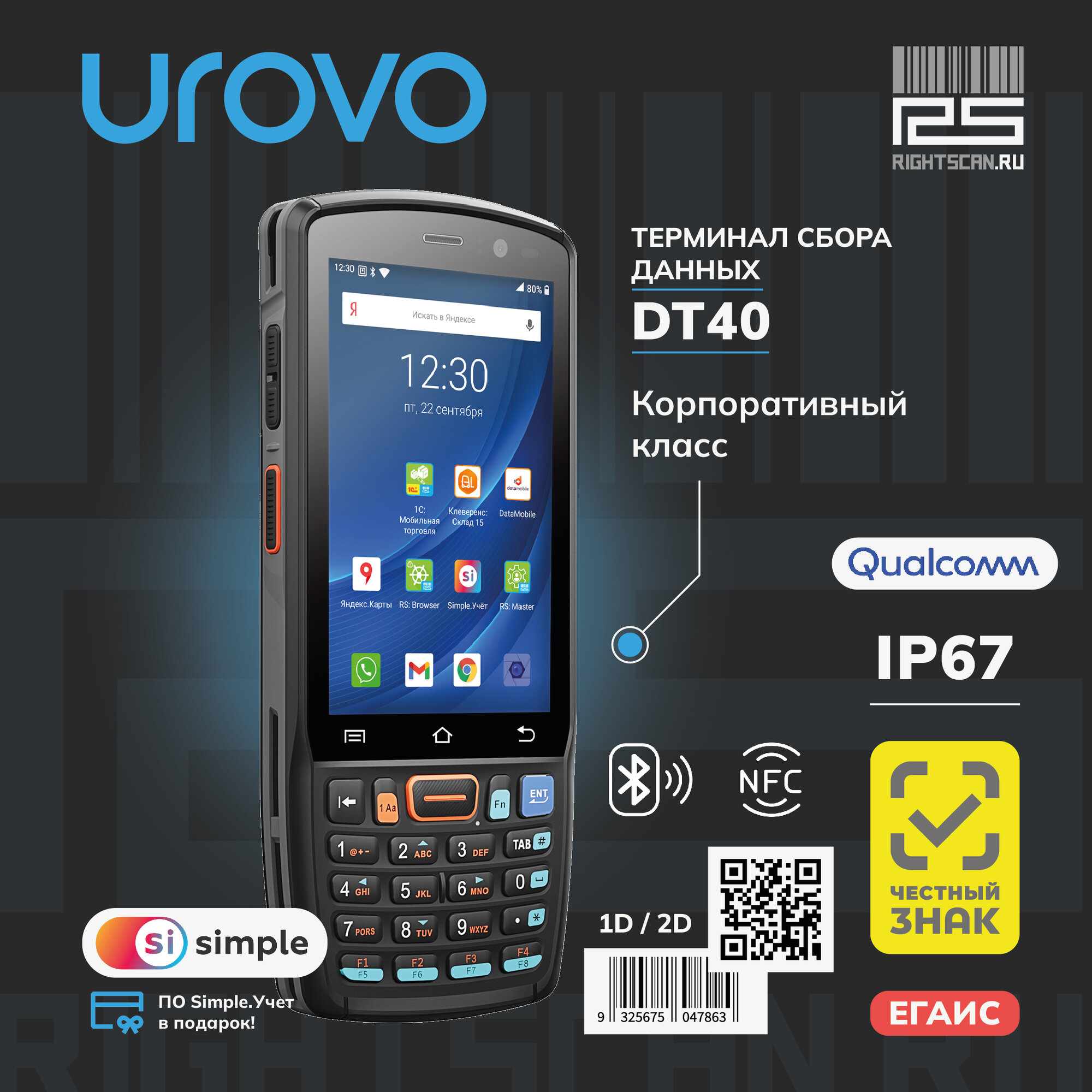 Терминал сбора данных Urovo DT40 (dt40-sh7s9e401x)