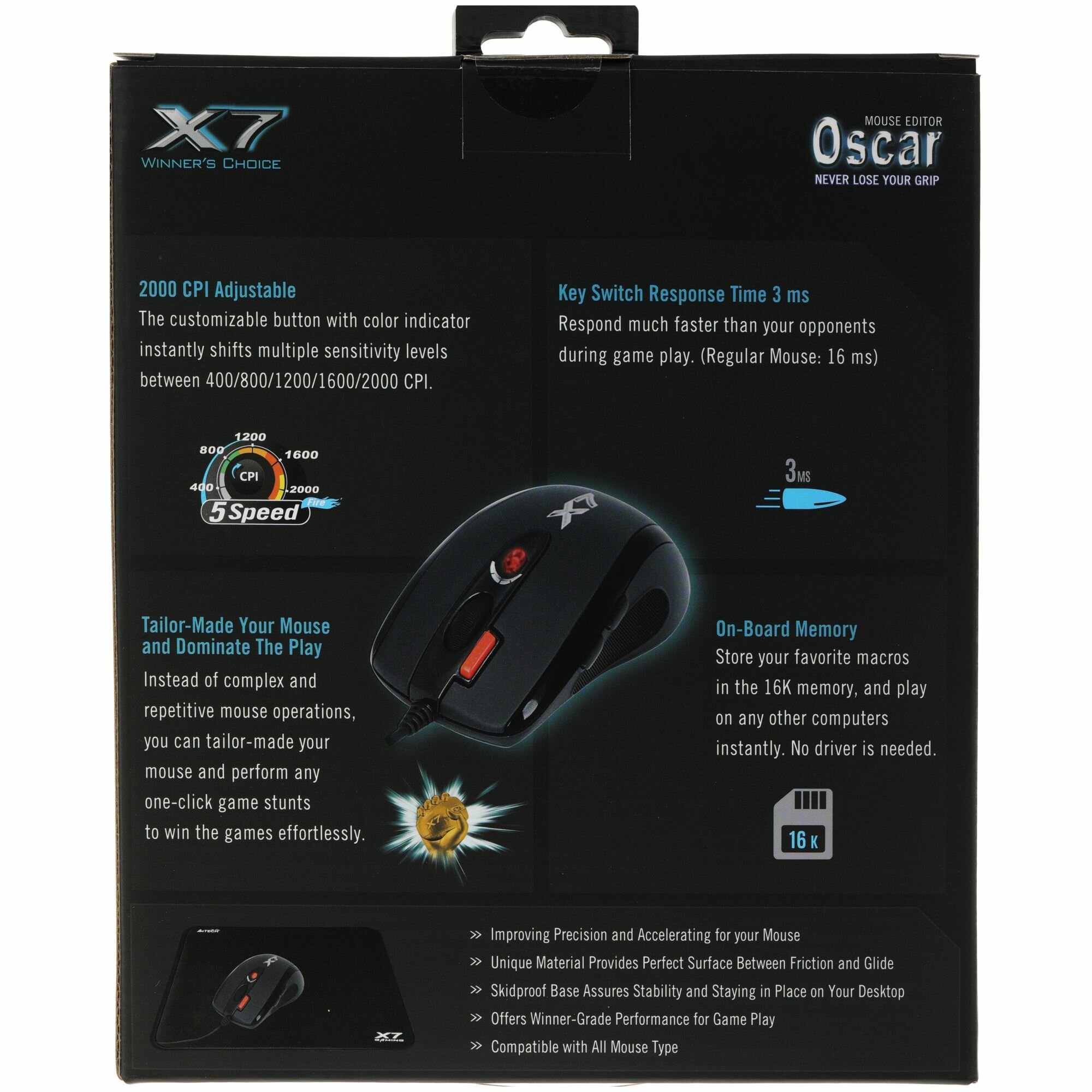 | Особенности мыши | двойной клик, оплетка кабеля, встроенная память, смена профиля |