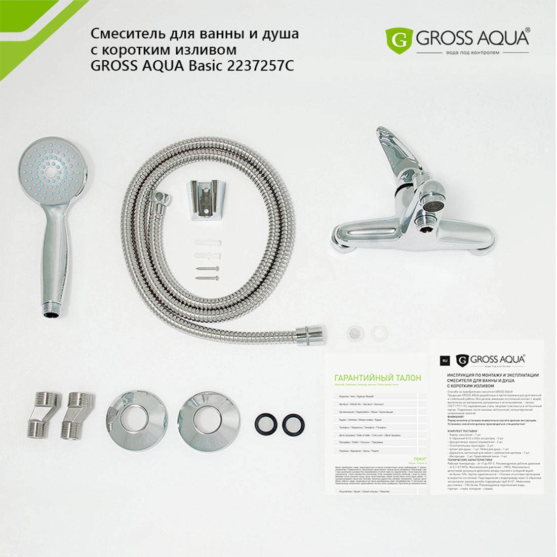 На сегодняшний день товар «Смеситель для ванны GROSS AQUA Basic (2237257C) короткий излив однорычажный хром» можно купить с кешбеком в 1 магазине: Onliner BY