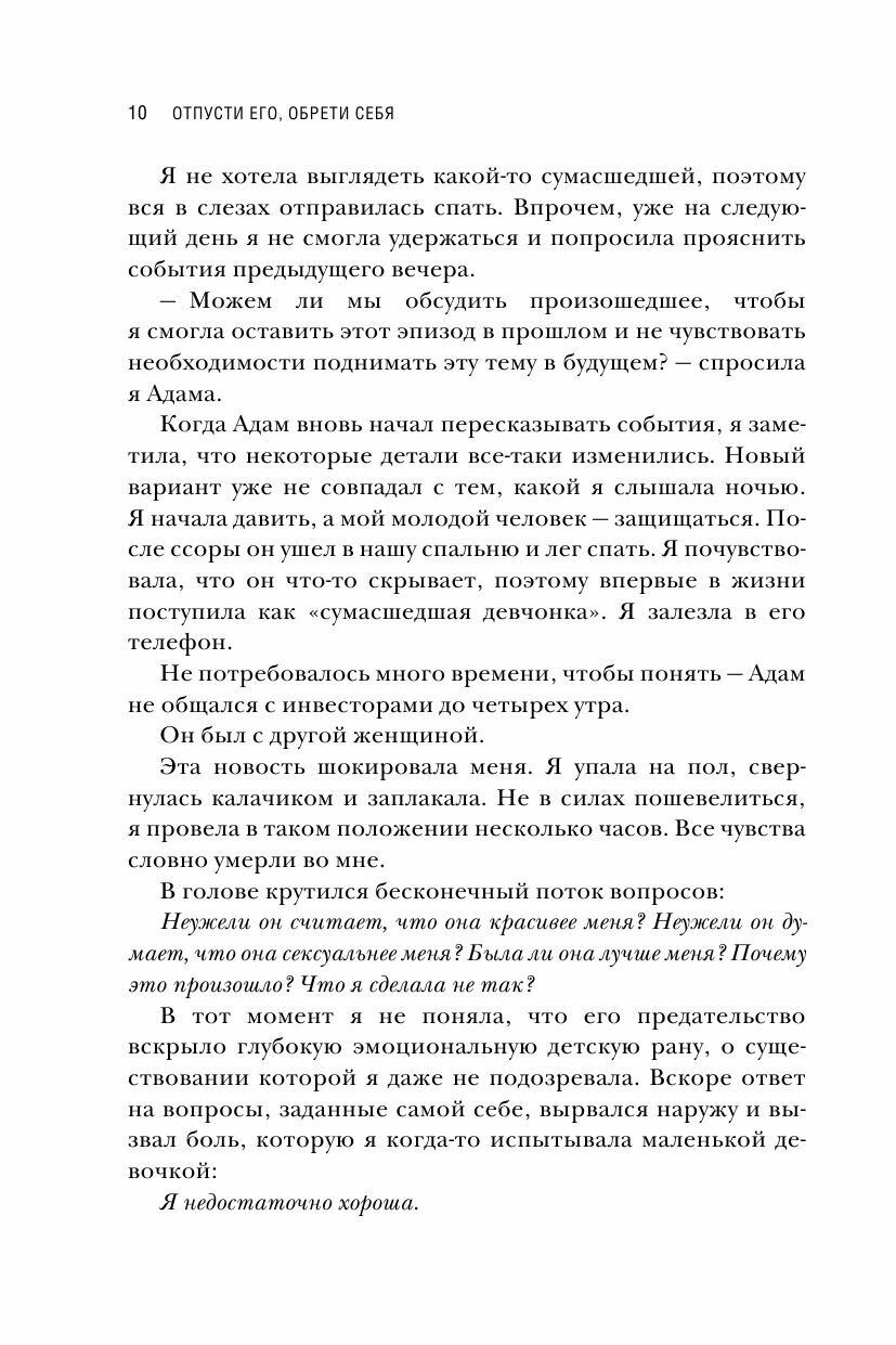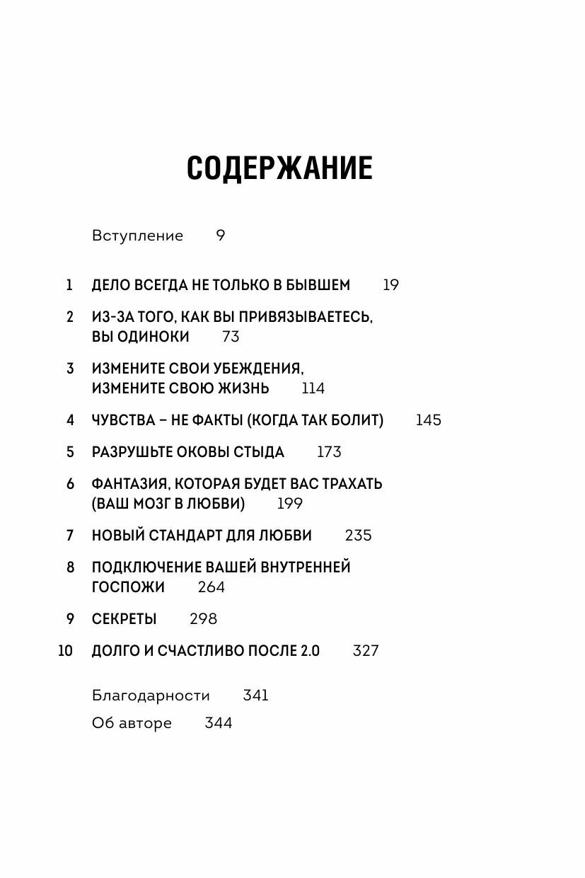 Когда мы влюблены, мы думаем, что это чувство будет длиться вечно. Поэтому разрыв отношений вызывает страх одиночества и крах надежд на счастливое будущее. Мы душим себя вопросами: "Почему так вышло? Я недостаточно хороша? Неужели со мной что-то не так?" Эти чувства хорошо знакомы автору книги.