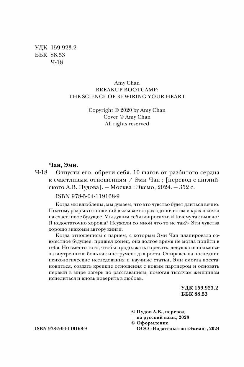 Отпусти его обрети себя. 10 шагов от разбитого сердца к счастливым отношениям (Чан Эми); ООО "Издательство "Эксмо", 2023