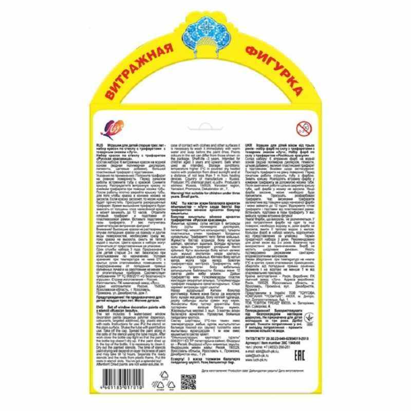 Набор "Русская красавица" предназначен для рисования витражными красками по трафарету. Пластиковый шаблон идеально подойдёт для детей, которые только начинают осваивать эту технику рисования. А образ фигурки придётся по душе не только детям дошкольного и младшего школьного возраста, но и более взрослой аудитории.