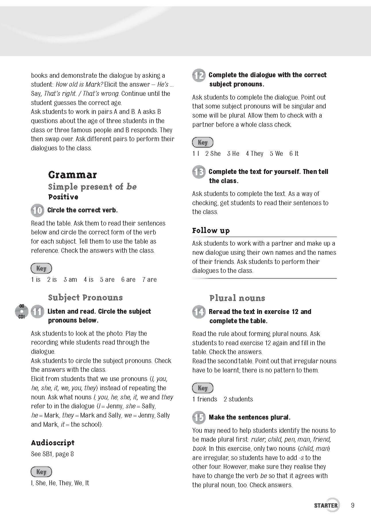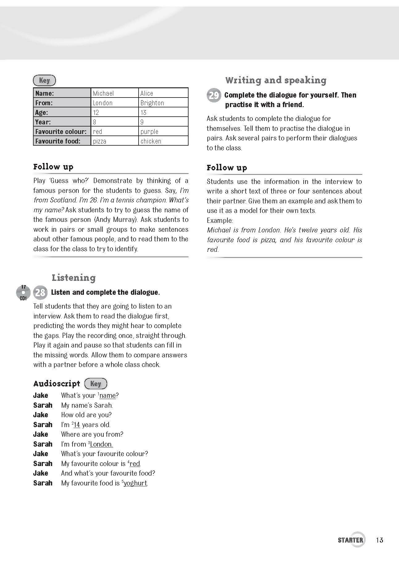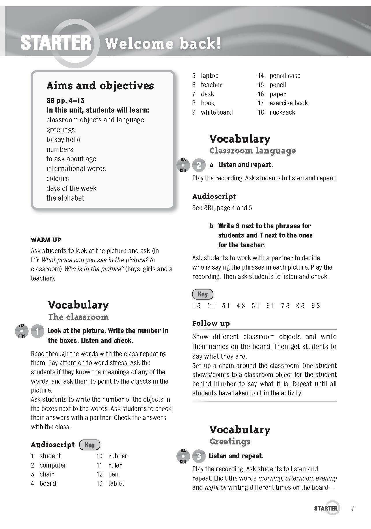The Teacher's Book contains teaching suggestions and detailed guidance on how to get the best out of the course. It also includes the audio scripts and the answer keys for both the Student's Book and Workbook.