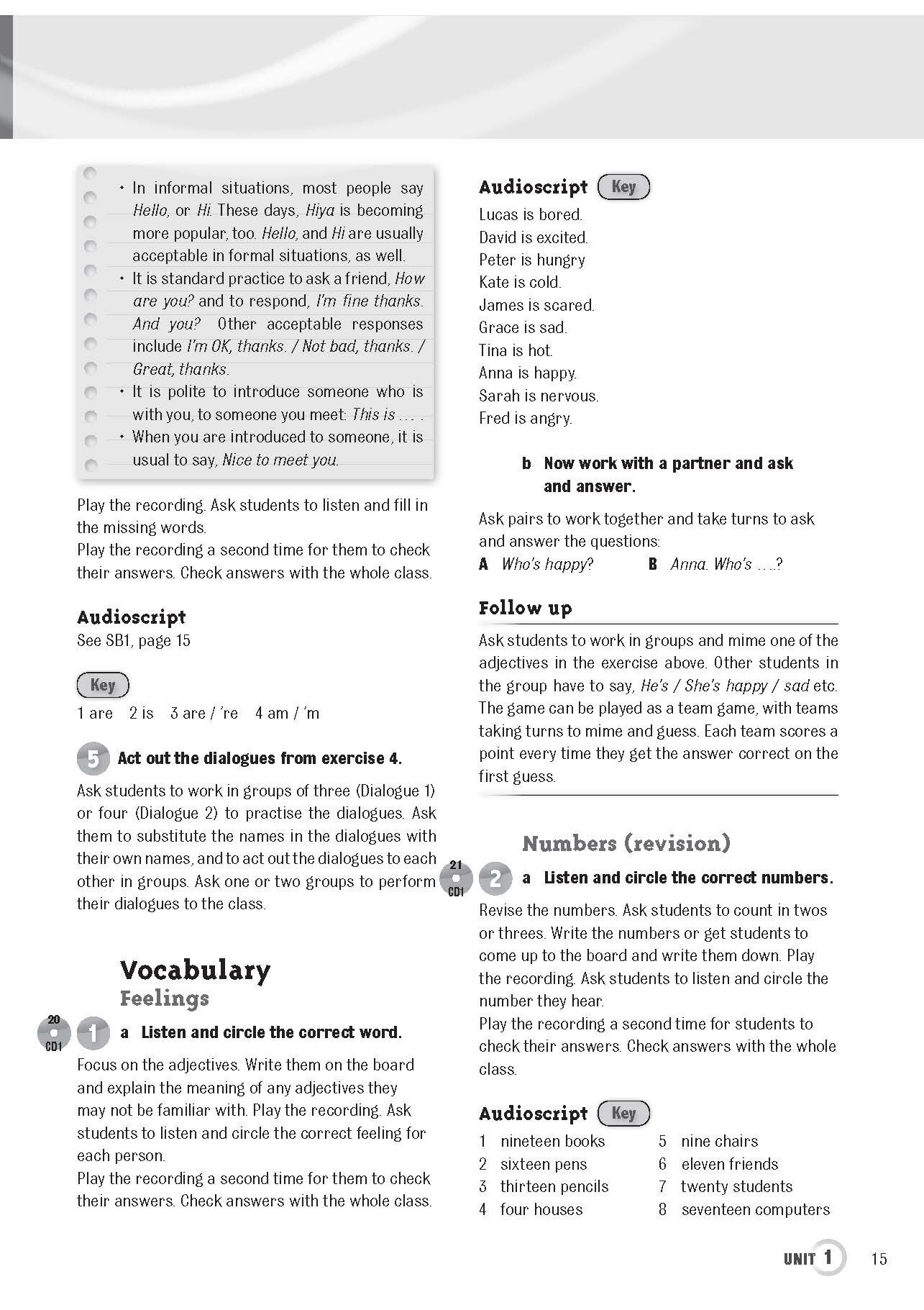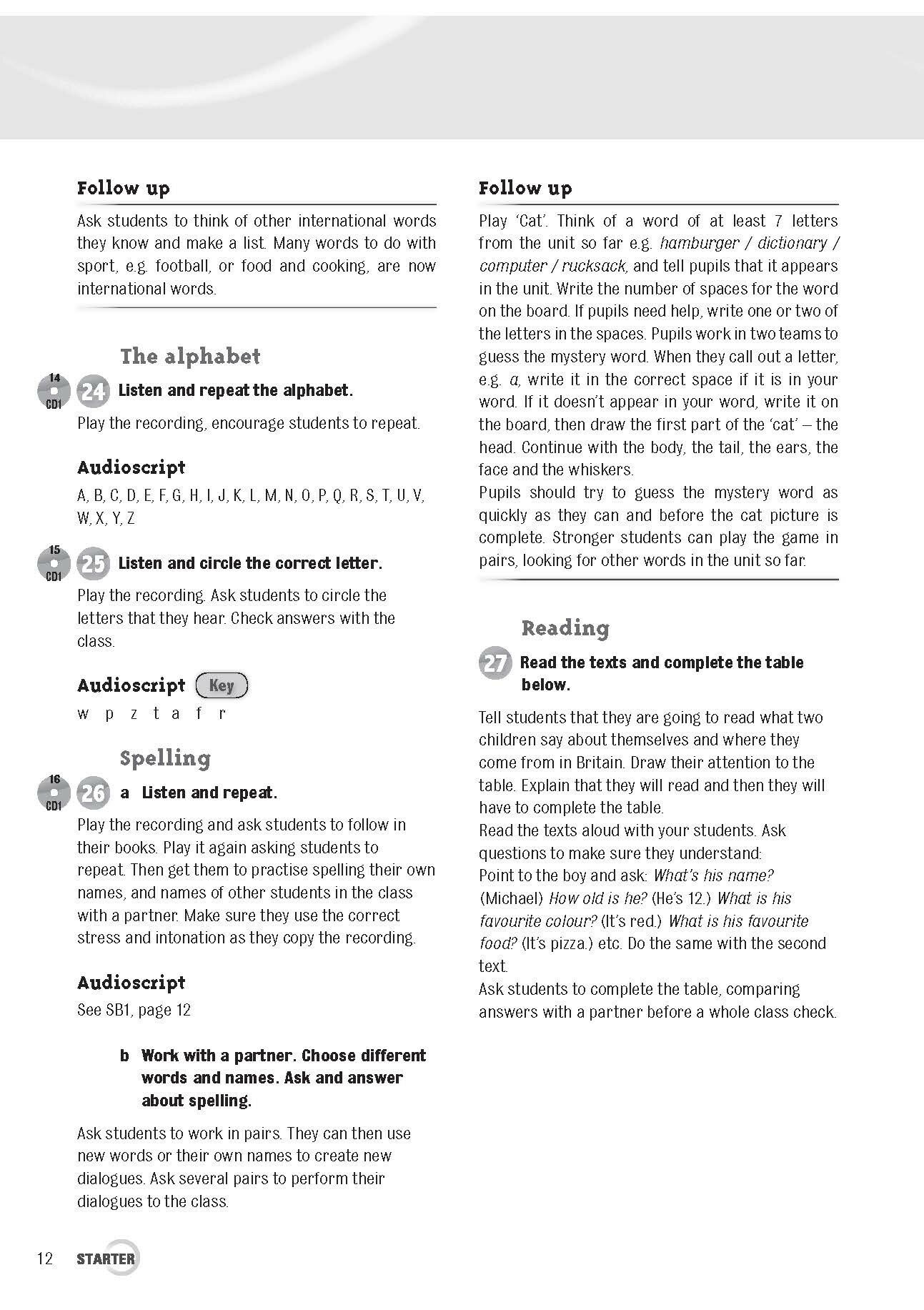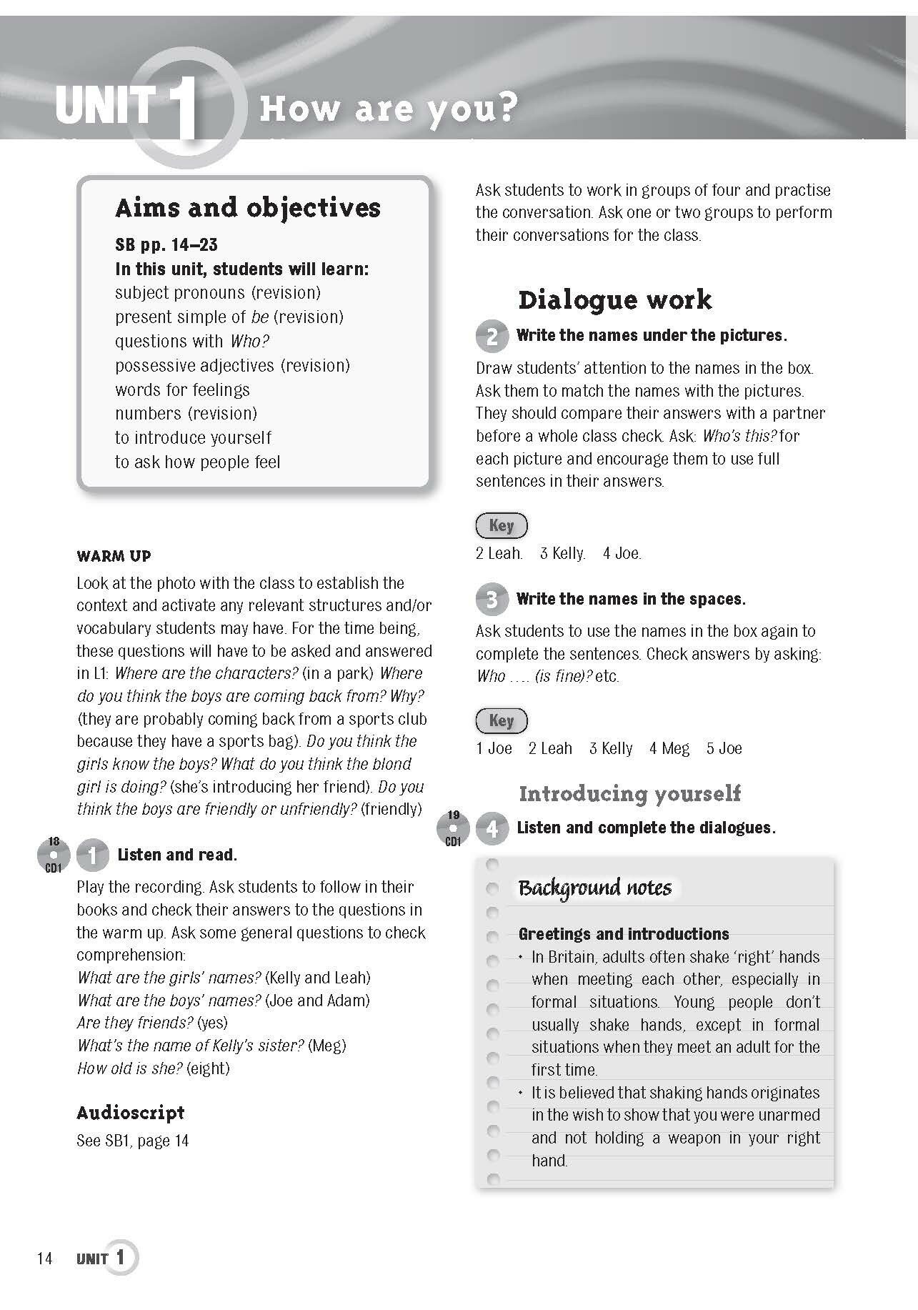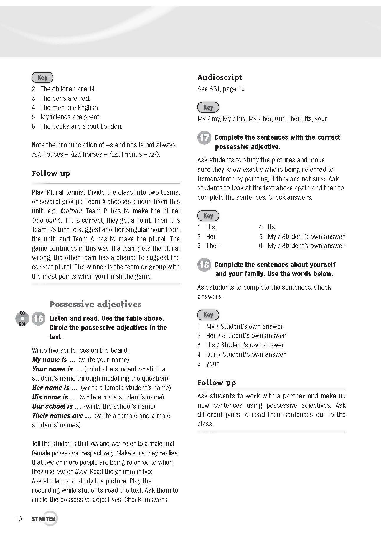The Teacher's Book contains teaching suggestions and detailed guidance on how to get the best out of the course. It also includes the audio scripts and the answer keys for both the Student's Book and Workbook.