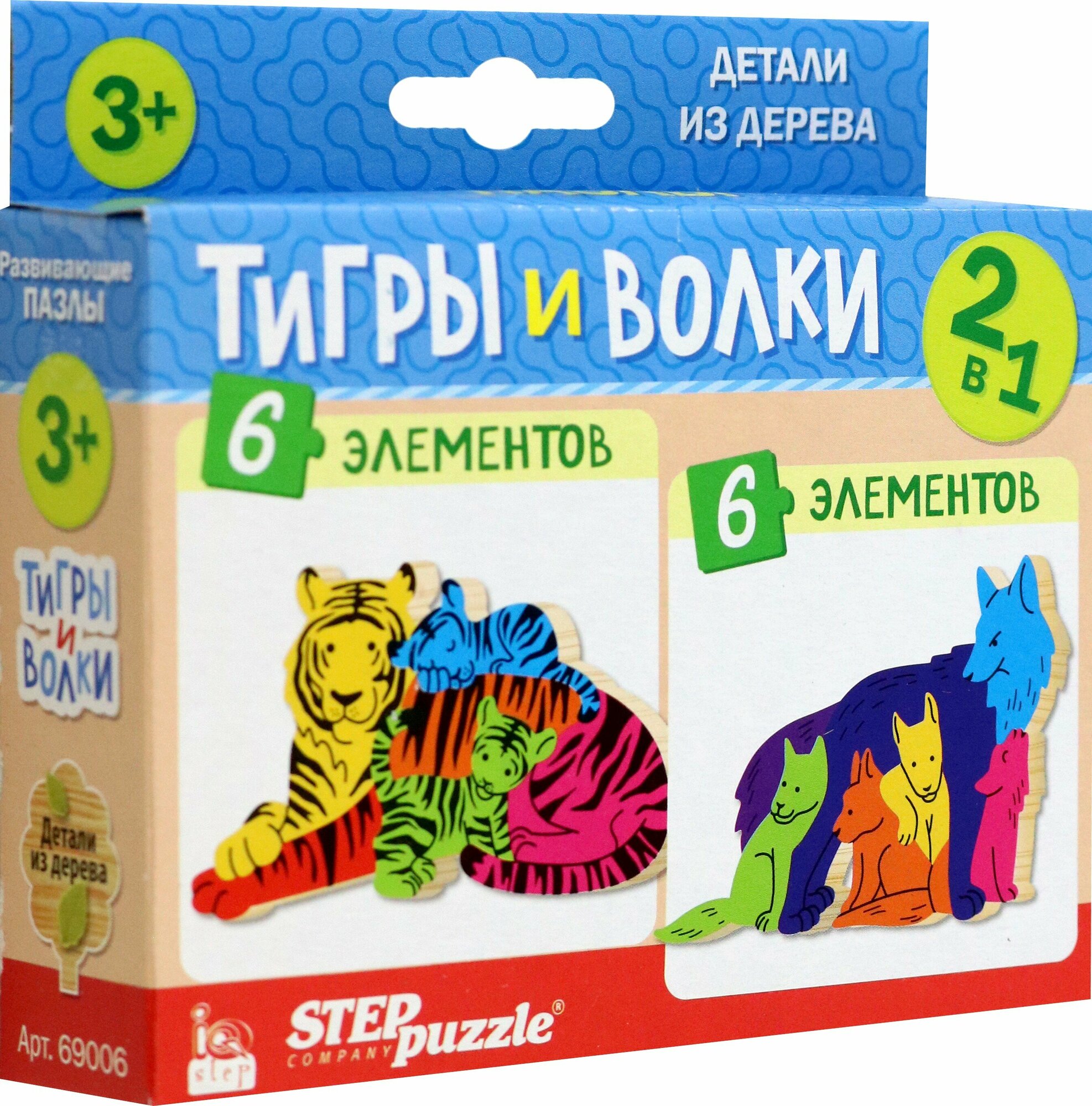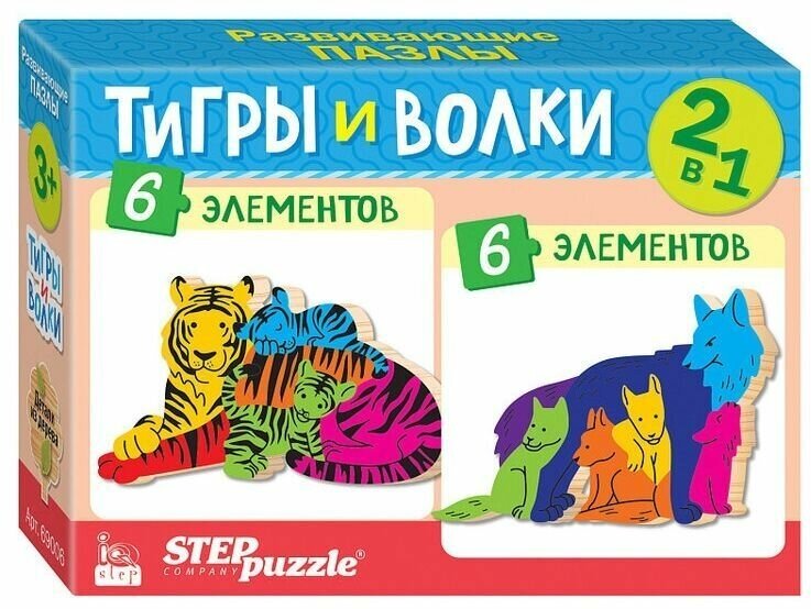 Puzzle 2в1 из дерева Тигры и волки Степ Пазл