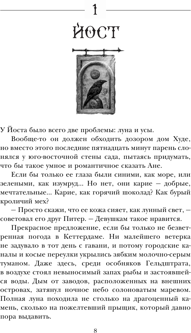 Каз Бреккер никогда не снимает черных перчаток. Но, если не хочешь стать ужином для акул, не спрашивай его, почему. Никому не известно, где его семья, откуда он пришел и почему остался в Кеттердаме. Зато он знает обо всех и все. Бреккер - правая рука главаря одной из самых влиятельных банд в городе. Казино, бордели, нелегальная торговля - его стихия. А еще шантаж, грабеж и, если понадобится, хладнокровное убийство. Но все это мелочи по сравнению с новым заказом. На кону - баснословные деньги и… секрет, который может уничтожить одни народы и возвеличить другие. Какие именно - теперь зависит от Каза и его команды. Шестерых "воронов", которым нечего терять кроме надежды. Это дело объединит их. Лучшего стрелка банды Отбросов и новичка, который не умеет держать пистолет в руках. Соблазнительную чародейку, умеющую с помощью магии взрывать сердца, и безжалостного охотника на таких, как она. Юную гимнастку из самого известного публичного дома во всей Керчии и Каза Бреккера, способного без тени сомнения вырвать глаз предателю. Им предстоит один путь, но у каждого своя цель…