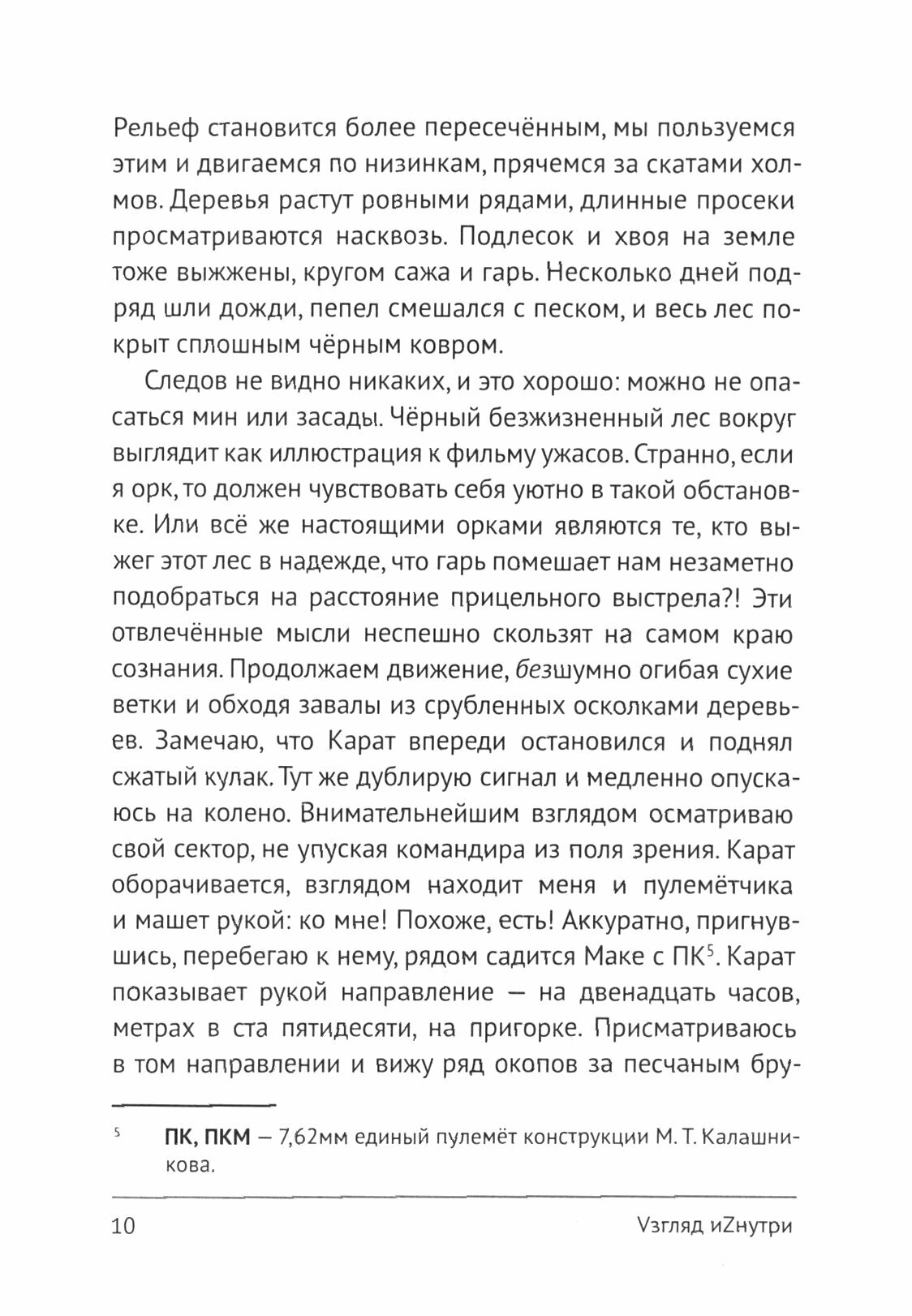 Легко сидеть у телевизора, слушать новости и обсуждать с домочадцами боевые действия, раздавая советы. А как война выглядит изнутри, глазами того, кто в любую непогоду надевает на себя тяжёлое вооружение и идёт прямиком на передовую, чтобы там рискнуть жизнью во имя общей цели? «Серое хмурое небо, холодный моросящий дождь висит в воздухе стеной капель, снаряжённый броник и огнемёт давят на плечи. А впереди — штурм неизвестных позиций. Снова хочется спать, многодневная усталость наваливается невидимой, но ощутимой тяжестью — вот что такое война». Будням солдата и памяти всех воинов-добровольцев посвящена эта книга, которая показывает реальность войны, остающуюся за кадром.
