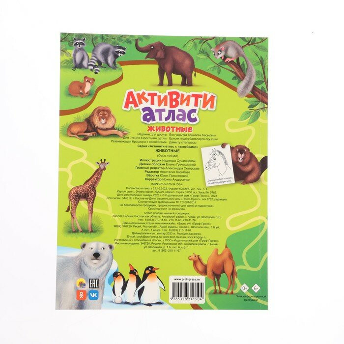 Книга: Активити-атлас. Животные (Редакция "ИД "Проф-Пресс"); Проф-Пресс Издательский Дом ООО, 2023