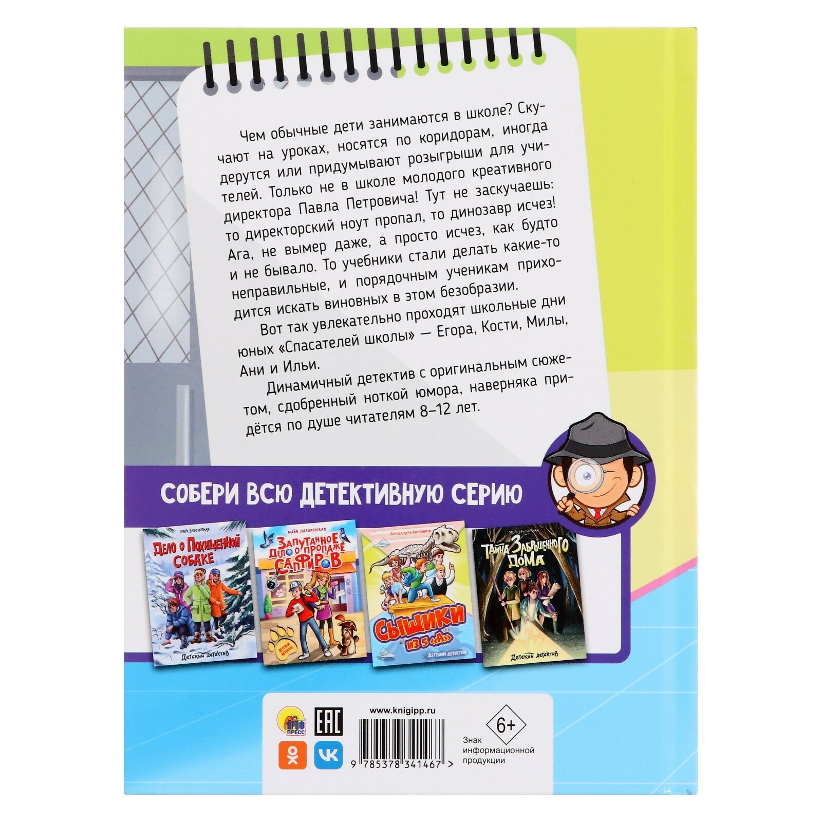 Чем обычные дети занимаются в школе? Скучают на уроках, носятся по коридорам, иногда дерутся или придумывают розыгрыши для учителей. Только не в школе молодого креативного директора Павла Петровича! Тут не заскучаешь: то директорский ноут пропал, то динозавр исчез! Ага, не вымер даже, а просто исчез, как будто и не бывало. То учебники стали делать какие-то неправильные, и порядочным ученикам приходится искать виновных в этом безобразии. Вот так увлекательно проходят школьные дни юных "Спасателей школы" - Егора, Кости, Милы, Ани и Ильи. Динамичный детектив с оригинальным сюжетом, сдобренный ноткой юмора, наверняка придётся по душе читателям 8-12 лет.
