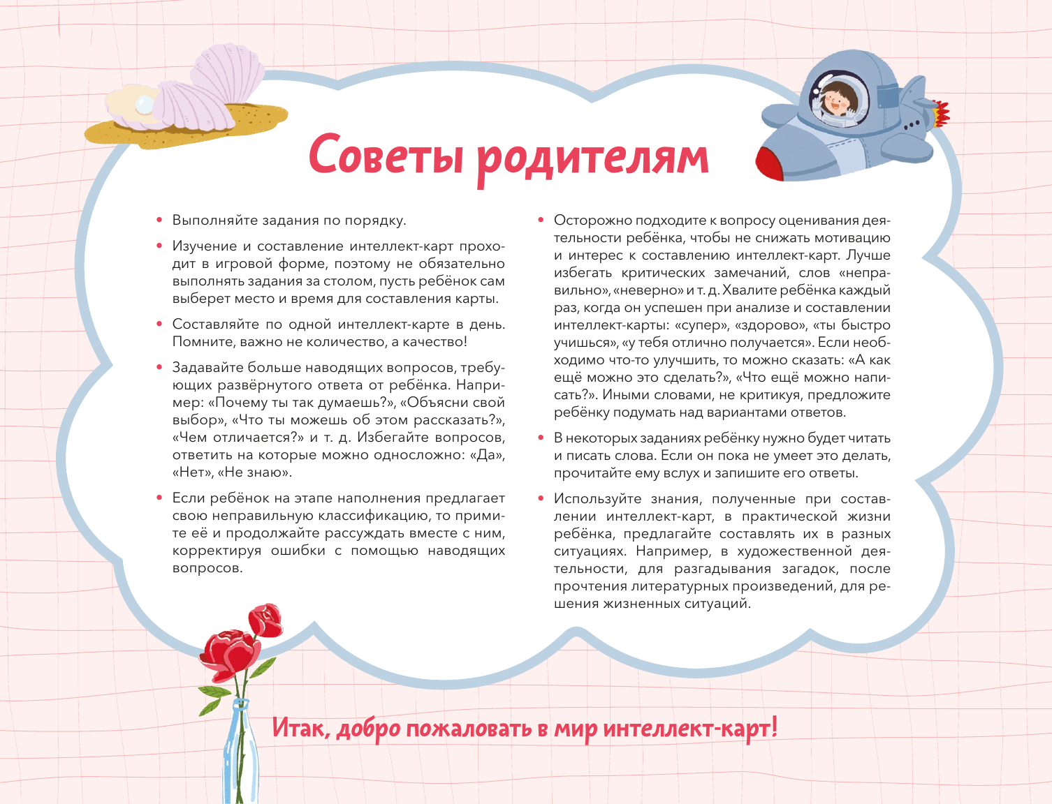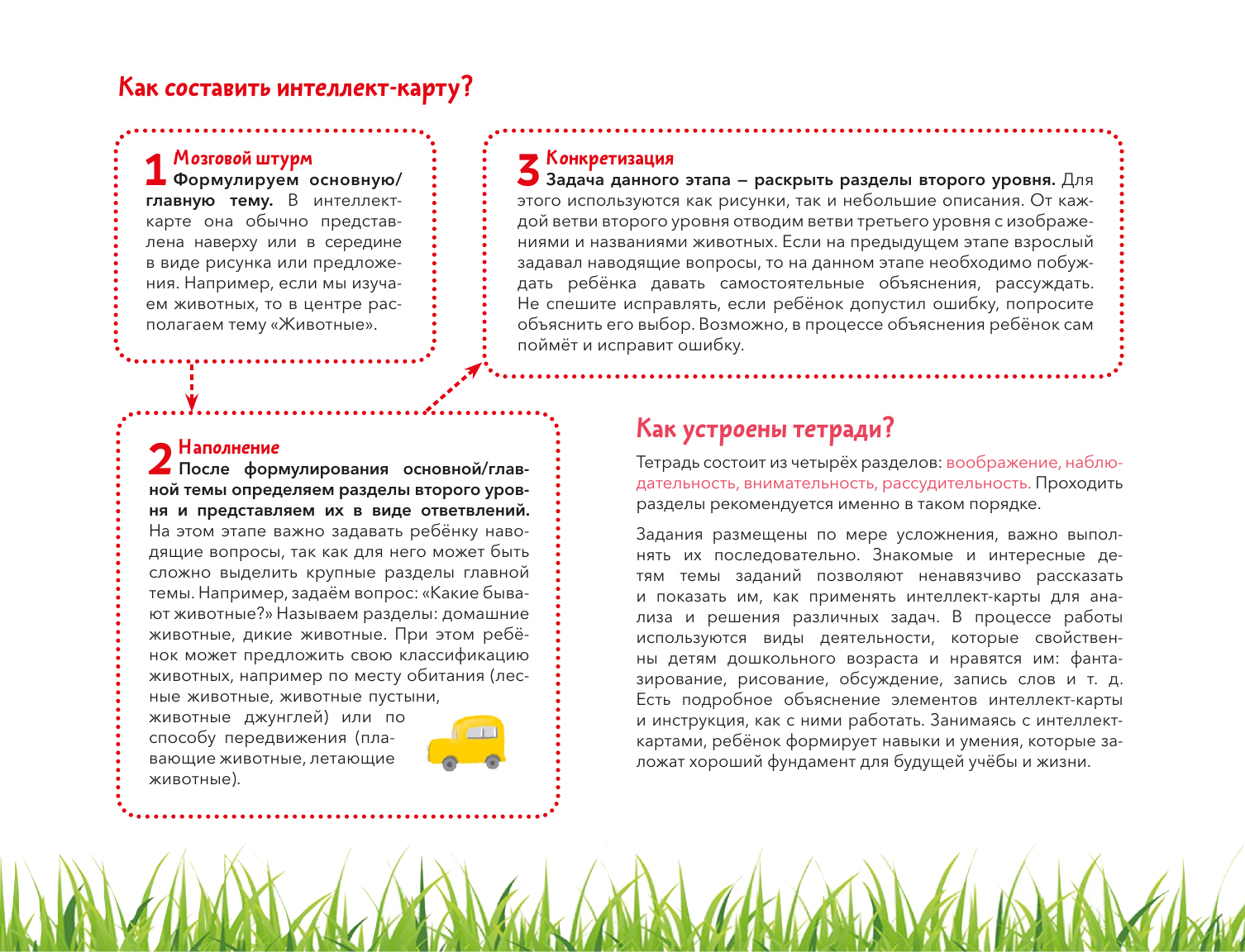 В каждом из них ребенок будет учиться составлять интеллект-карты и выполнять задания на развитие указанного навыка.