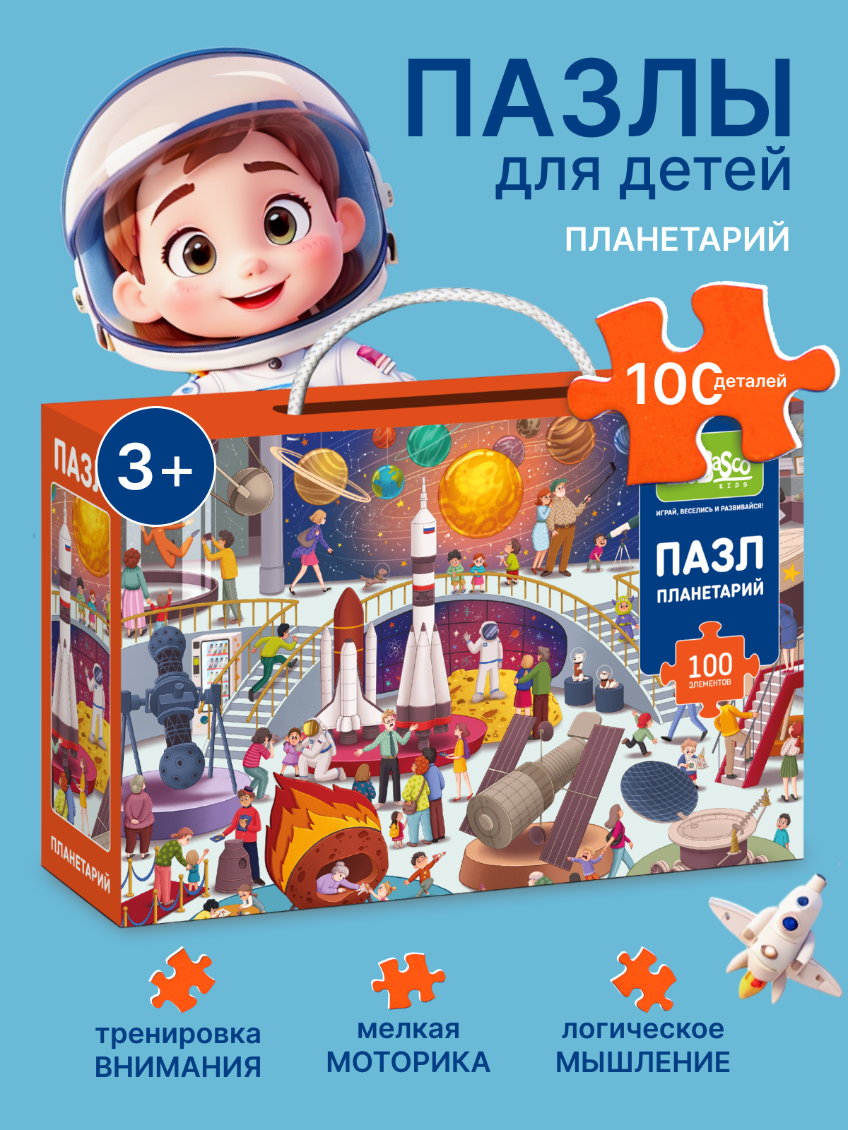 Музей — это удивительное место, которое хранит в себе тайны и культурные или исторические особенности разных сфер жизни, эпох, событий или науки. Там можно узнать много нового и интересного, что поможет расширить кругозор ребенка. Не всегда есть возможность выбраться в музей, на выставку или в планетарий, здесь приходит на помощь серия пазлов «Музеи». Четыре просторных и классных выставочных зала распахнут свои двери для юных исследователей, но для начала их нужно собрать. Пазл из неповторяющихся элементов состоит из 100 деталей. Каждый пазл — это настоящая выставка музейных экспонатов! Все иллюстрации выполнены в стиле игры-квеста, где все изображения сочетают в себе разные кусочки историй, которые происходят с разными персонажами. Хочется внимательно разглядеть каждую мелочь на картинке. Все изображения разработаны совместно с детскими психологами и методологами детских образовательных программ. Каждый пазл иллюстрирует большое количество мелких элементов, которые хочется рассматривать внимательно и размышлять о их происхождении. Обсудите с ребенком все, что вы видите на изображении, что он думает о том, что видит. Пазлы выполнены из легкого, но в то же время прочного и износоустойчивого картона. Пазл состоит из 100 элементов. Размер собранного пазла 46*64 см. Детали набора представлены в среднем формате для удобства игры деткам разного возраста. Все элементы пазла плотно соединяются между собой и образуют четкое цельное полотно, которое можно перемещать без потери деталей. Упаковка пазла выполнена из плотного картона с ручкой-шнурком в котором одинаково удобно хранить игру на книжных полках, в закрытых шкафах и на любых открытых поверхностях. Его удобно брать с собой, а также, пазлы можно подарить без специальной упаковки, поскольку каждая коробочка изготовлена в формате подарочного издания. Серия детских пазлов подходит для мальчиков и девочек. Пазл является частью серии, в которую входят еще 3 вида изображений. Соберите все пазлы серии, чтобы собрать четыре больших выставочных зала с разными экспонатами! Увлекательное настольное развлечение станет отличным решением для семейного досуга с родителями, для занятий в путешествиях, для проведения времени с друзьями, а также для общего развития вашего ребенка. Пазл станет приятным подарком для ребенка, как на праздник в детский сад, так и на день рождения, именины или, как знак внимания вместо сладостей. Такая игра станет отличным поводом интересно провести время вместе с ребёнком!