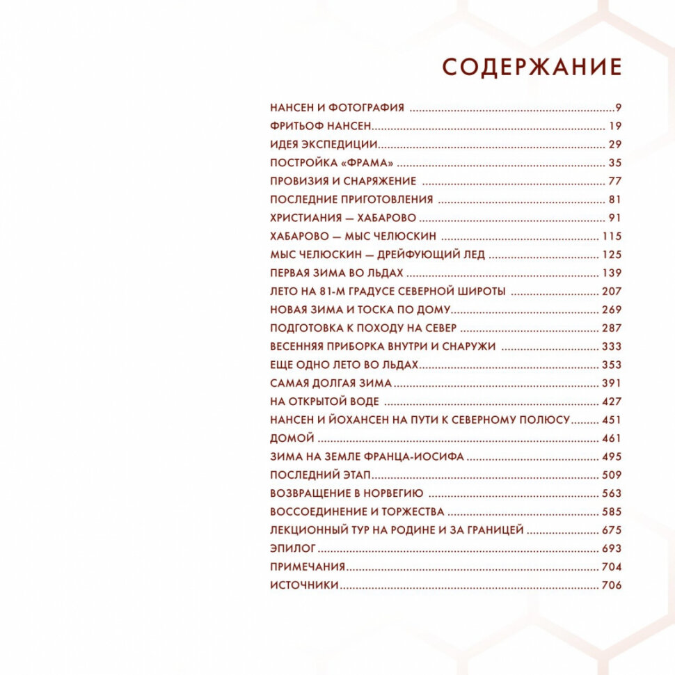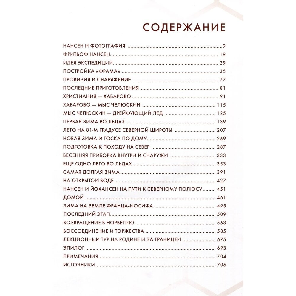 В основе книги - все известные фотоснимки, сделанные вовремя экспедиции, а также выдержки из дневников Нансена и семи членов его команды, описывающие обстоятельства, при которых эти фотографии были сняты. Многие дневники лишь в 2021 г. были впервые опубликованы на норвежском. И, таким образом, история экспедиции рассказывается с использованием дневниковых цитат, впервые переведенных на русский язык. История предстает перед читателем в виде дневниковых записей и газетных репортажей. Кроме того, в книге есть главы, посвященные подготовке экспедиции, а также празднованиям и лекционным турам, состоявшимся после ее возвращения в Норвегию в августе 1896 г. История постройки "Фрама", первого специального судна для полярных исследований, показана через обширную переписку Нансена с конструктором и судостроителем Колином Арчером и чертежи судна - от начальной идеи до финального варианта.
