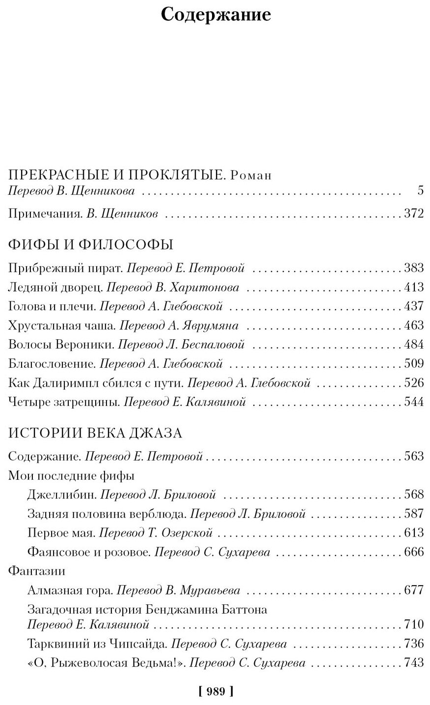 Фрэнсис Скотт Фицджеральд, возвестивший миру о начале нового века — Века Джаза, стоит особняком в современной американской классике. Плоть от плоти той легендарной эпохи, он отразил ее ярче и беспристрастнее всех. Эрнест Хемингуэй писал о нем: «Его талант был таким естественным, как узор из пыльцы на крыльях бабочки». В предлагаемую вашему вниманию книгу включены роман «Прекрасные и проклятые» (своего рода испытательный полигон перед общепризнанным шедевром — «Великим Гэтсби») и три полных авторских сборника знаменитого мастера — «Фифы и философы», «Истории Века Джаза», «Все юноши печальные».