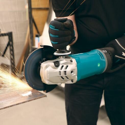 Углошлифовальная машина Makita – мощный и надежный инструмент профессионального уровня. Он оборудован двигателем с увеличенной устойчивостью к перегреву и редуктором с усиленными шестернями, что делает его особенно подходящим для длительной интенсивной работы. С помощью болгарки можно резать металлические и пластиковые заготовки, шлифовать и полировать поверхности из различных материалов. Для большего комфорта на рукоятках предусмотрены мягкие накладки.