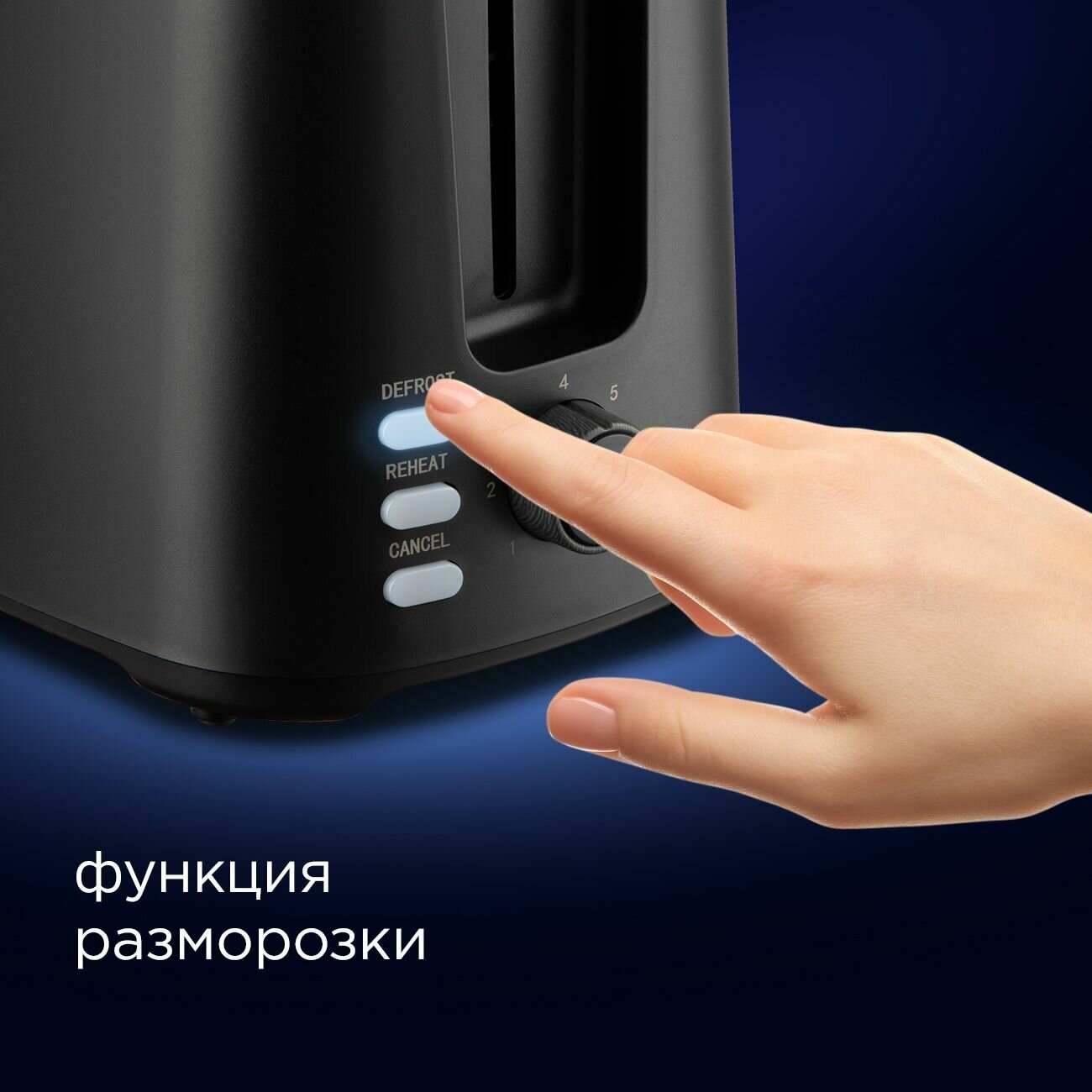 Тостер также обладает несколькими полезными функциями, такими как разморозка и подогрев. Таким образом, можно легко разморозить замороженные тосты или подогреть уже готовые. Еще один удобный момент – наличие функции отмены приготовления, что позволяет прервать процесс в любой момент.