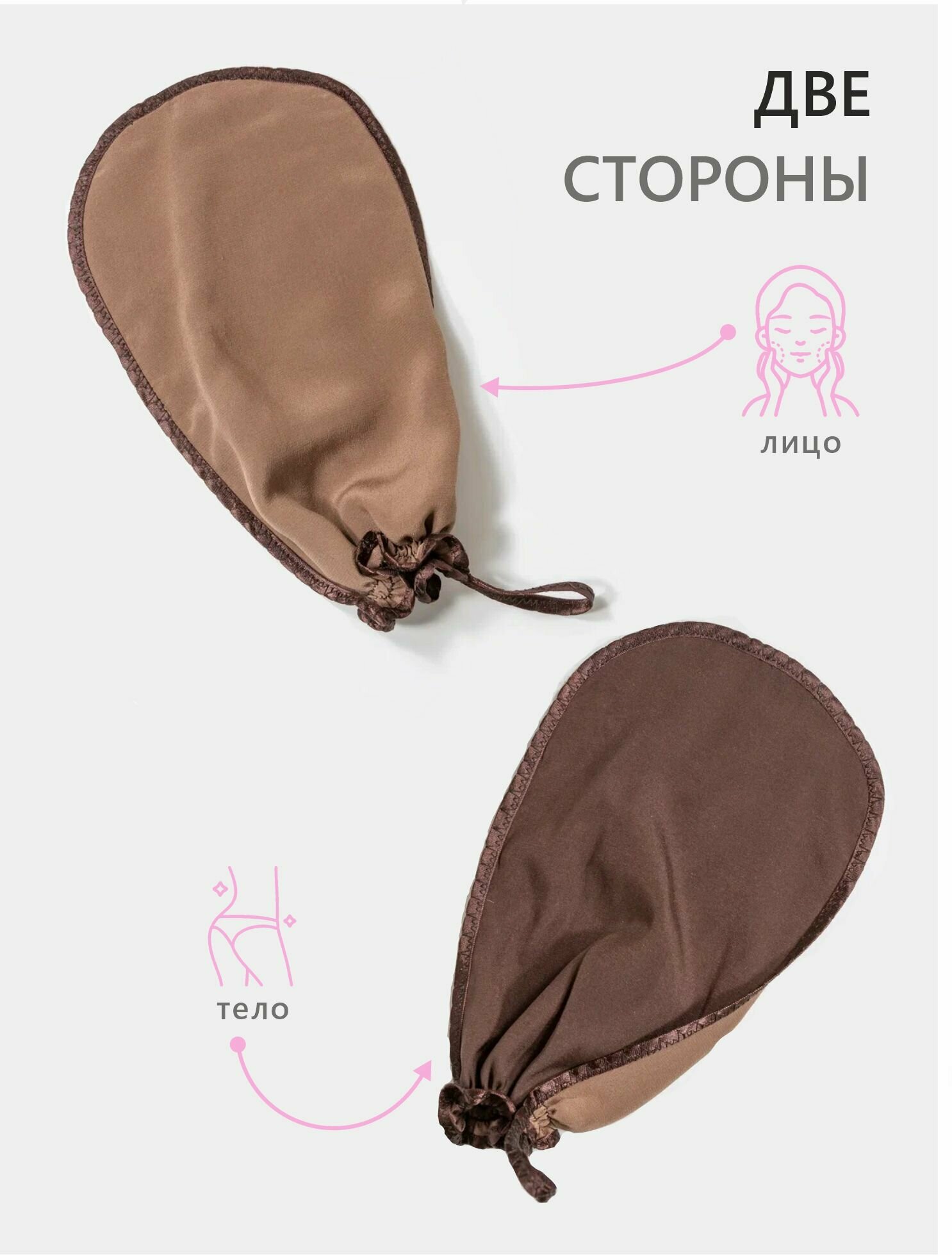 Варежка Classic&Delicate - двусторонняя классическая из крепдешина и атласа (100%-й шелк). Сторона из крепдешина делает пилинг, сторона из атласа успокаивает кожу, более интенсивно насыщает серицином, чем другие виды шелка.