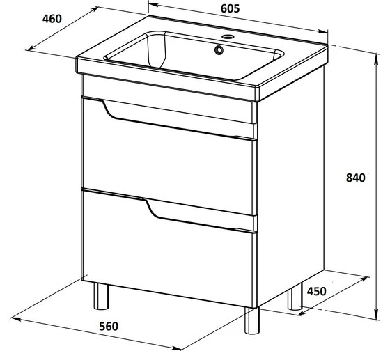 - Размеры (ШхВхГ): 605х840х460 мм.