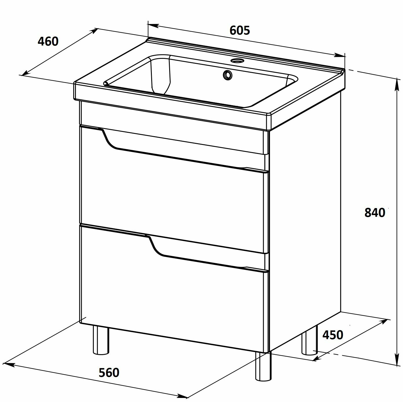Тумба с раковиной напольная Orange TOPLINE-Milano 60 см белая глянцевая TM60-02+RA Topline-Line
