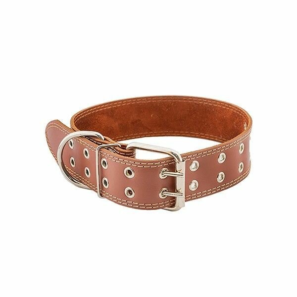HOMEPET ошейник для собак кожаный простой двойной простроченный двухслойный (59-71 см. Черный)