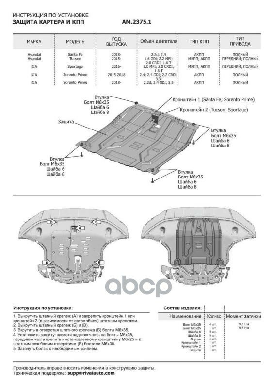 | Комплектация | защита - 1 шт., комплект крепежа, инструкция по установке, упаковка |