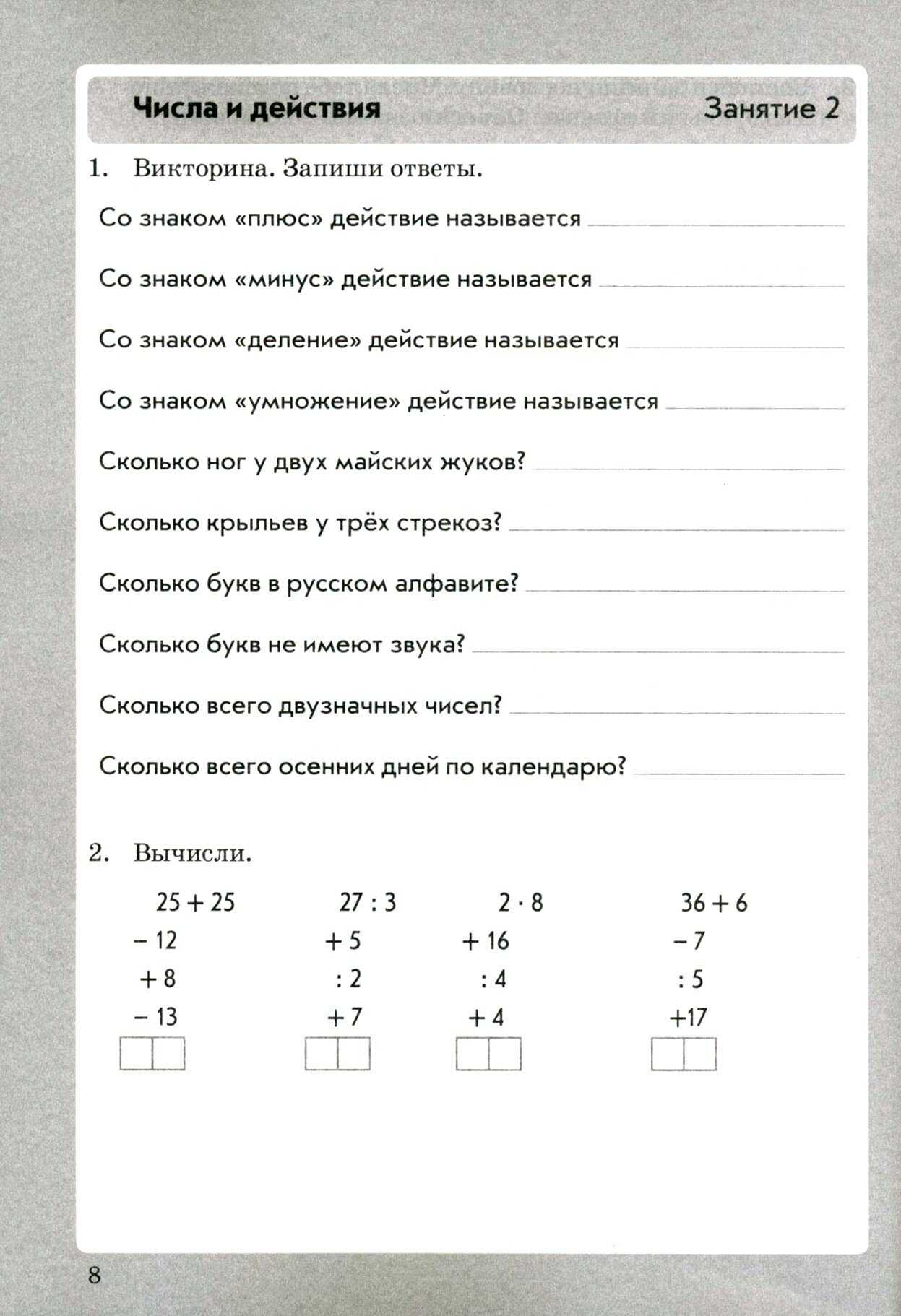 – знакомство с числами и знаками арифметических действий, знаками сравнения;