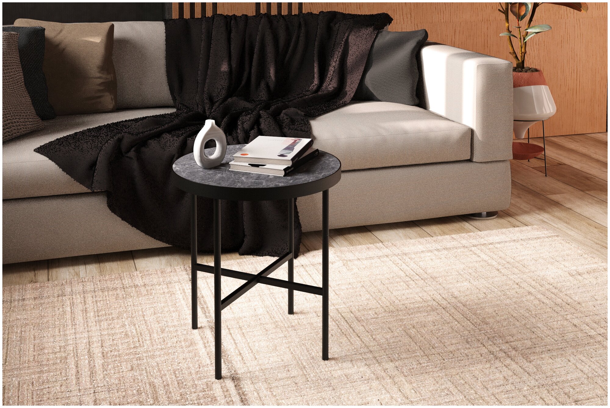 Журнальный столик выполнен в современном стиле, сочетающем оригинальную текстуру декоративного покрытия столешницы и металлического подстолья в цвете чёрный муар. Конструкция сборная. Низ: Крестовина и ножки из круглой металлической трубы с порошковой покраской (RAL 9005). Верх: МДФ толщина 10 мм с покрытием плёнкой. Продукция поставляется в разобранном виде, упакована в гофрокартон. В комплект входит вся необходимая фурнитура. Идея Callisto mobili заключалась в том, чтобы спроектировать журнальный столик для современного универсального дома. Круглая форма журнального стола с легкостью впишется в любой интерьер. Столик выполнен в стиле «LOFT». Гибкость стиля вполне позволяет обновить интерьер обычного типового жилья и удачно обыграть даже некоторые недостатки квартиры. Простой и практичный дизайн этого журнального столика создает невесомый образ в помещении. Современный круглый журнальный столик подойдет для выполнения различных повседневных функций: кто-то будет использовать его, чтобы поставить мелочи вроде пепельницы, статуэтки или часов, кто-то будет использовать как приставной к дивану, кровати, чтобы поставить различные гаджеты, журнал или книгу, кто-то будет красиво его сервировать к чаепитию, а кто-то увидит в нем изысканный вариант мини-бара, таким образом столик можно использовать, как сервировочный стол. Наши столики позаботятся обо всем, что хочется держать под рукой и станет желанным подарком близким, друзьям на день рождение, на новоселье и различные праздники. Срок гарантии: 24 месяца. Срок эксплуатации 10 лет.