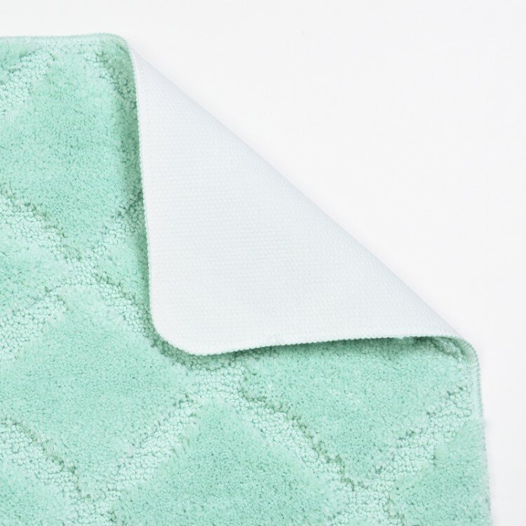 Назначение: Коврик для ванной комнаты. Материал: Антискользящее основание (термопластичная резина), микрофибра. Покрытие: Микрофибра. Описание: размер 900 х 600 мм, высота ворса 20 mm. Коврики подлежат машинной стирке при температуре не выше 30 градусов в режиме бережной стирки.