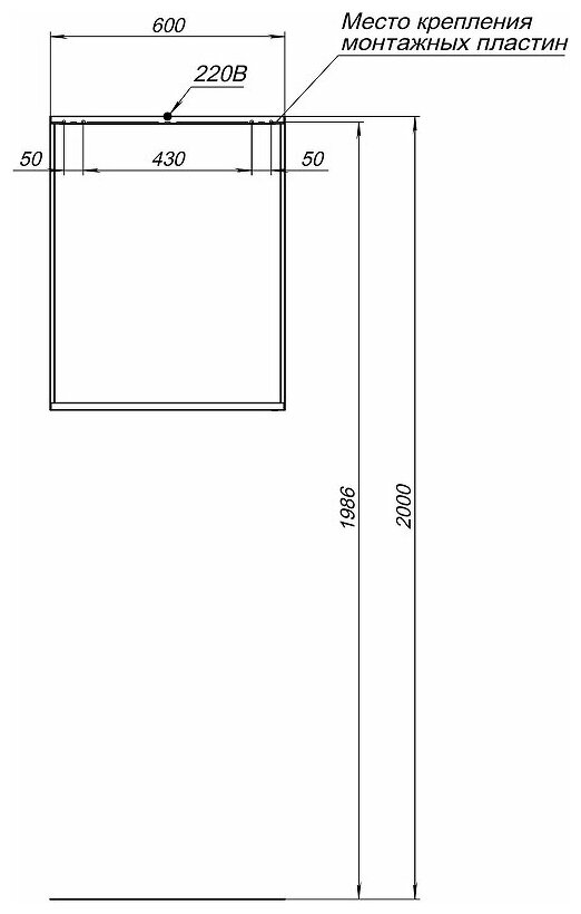 - Оснащение: полка, сенсорный выключатель (на корпусе).