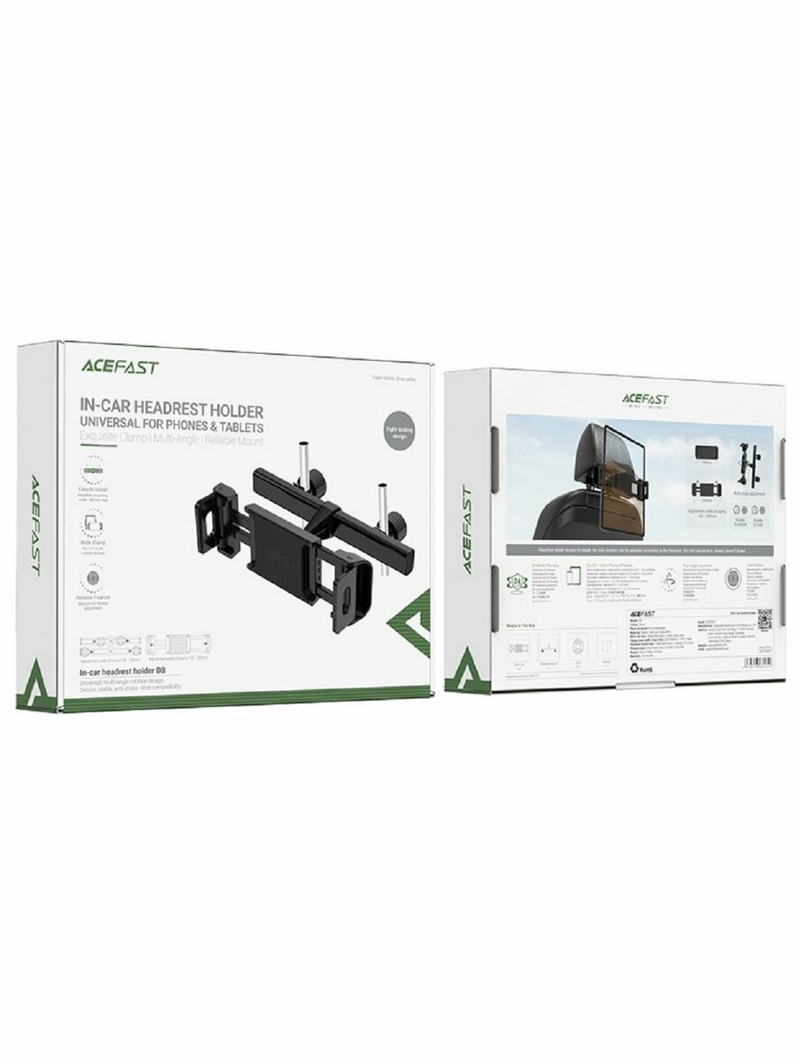 Автомобильный держатель Acefast отличается универсальным использованием благодаря зажимному механизму и позволяет надежно зафиксировать любое устройство, оснащенное экраном диагональю от 4,7" до 12,9". Силиконовые вставки на креплениях исключают возможные механические повреждения и случайное выпадение при быстрой езде и резких поворотах. Аксессуар устанавливается на подголовник с помощью регулируемого замка. Скрытый складной рычаг и отсутствие углов делают его безопасным для пассажиров. Изделие выполнено в прочном корпусе из качественных износостойких материалов - пластика и металла.
