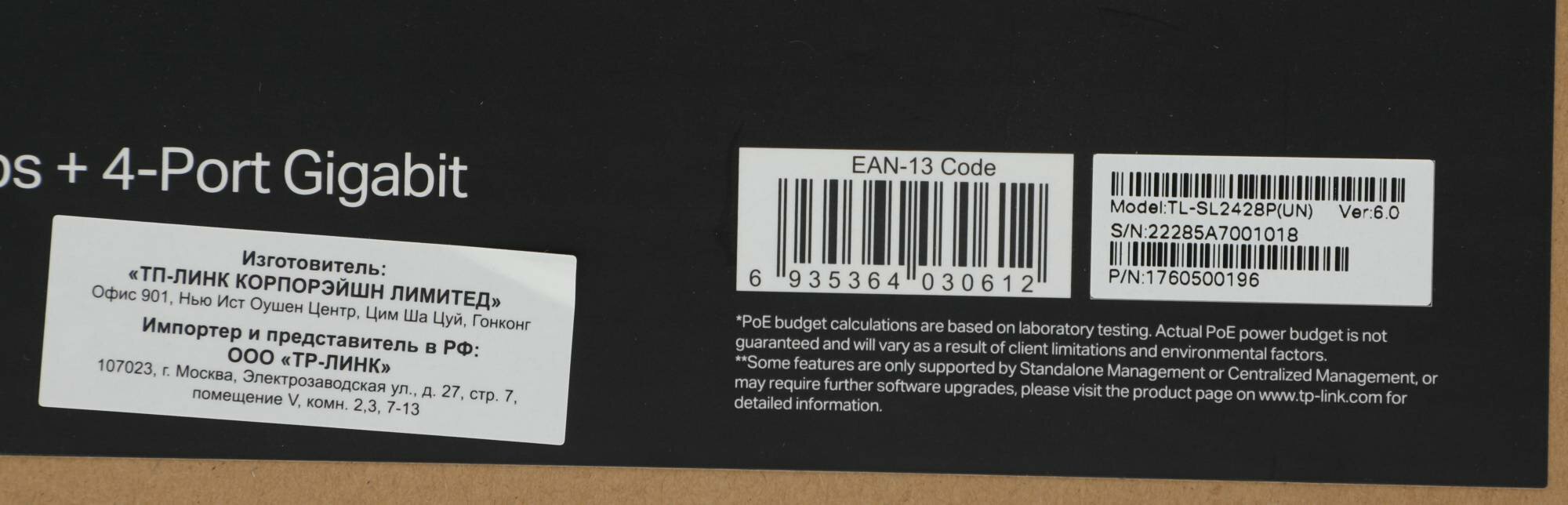 Коммутатор TP-Link TL-SL2428P – высокопроизводительное и эргономичное устройство, которое подходит для различных предприятий и организаций. Модель позволяет наладить и масштабировать сети компании. Веб-интерфейс обеспечивает простую и быструю установку устройства. Коммутатор TP-Link TL-SL2428P имеет 24 порта RJ45, 4 порта GbE и 2 SFP?слота. Внутренняя пропускная способность достигает 12.8 ГБ/с, а скорость обслуживания пакетов – 9.5 ГБ/с. Таблица МАС рассчитана на 8000 адресов. Модель имеет высокую степень защиты от широковещательных штормов, функцию приоритета данных, отслеживания сетевого трафика и другие особенности.