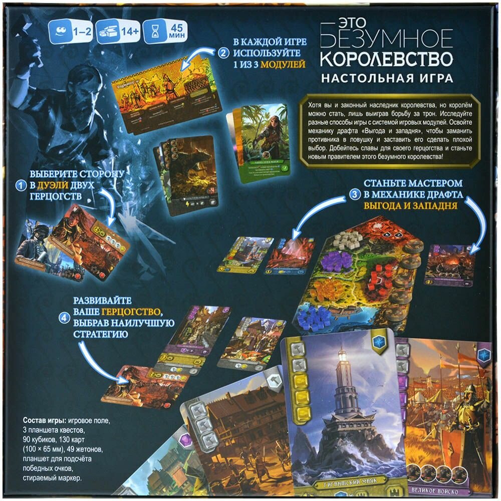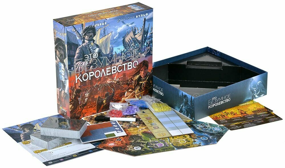 Игра «Это безумное королевство» - является обособленной игрой в серии игр «Этот безумный…» и является дуэльной игрой в средневековье. В течение 4 раундов игроки с помощью драфта будут сражаться за трон королевства, стараясь наилучшим образом развить собственное герцогство.