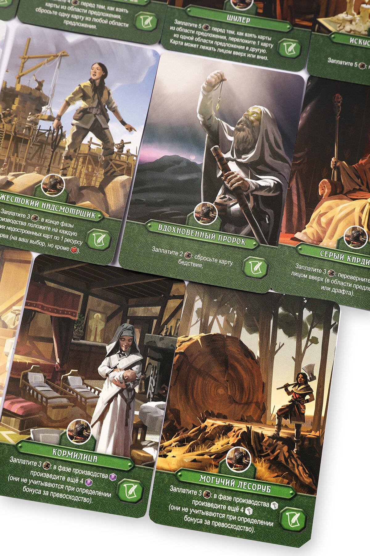 2) Планирование. Игроки решают какие карты они будут строить, а какие немедленно переработают, для получения ресурсов. Ресурсы требуются для строительства, но построенные карты могут приносить ресурсы каждый раунд и/или победные очки в конце игры.