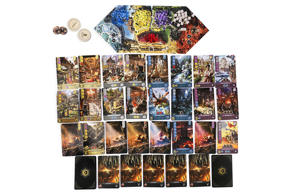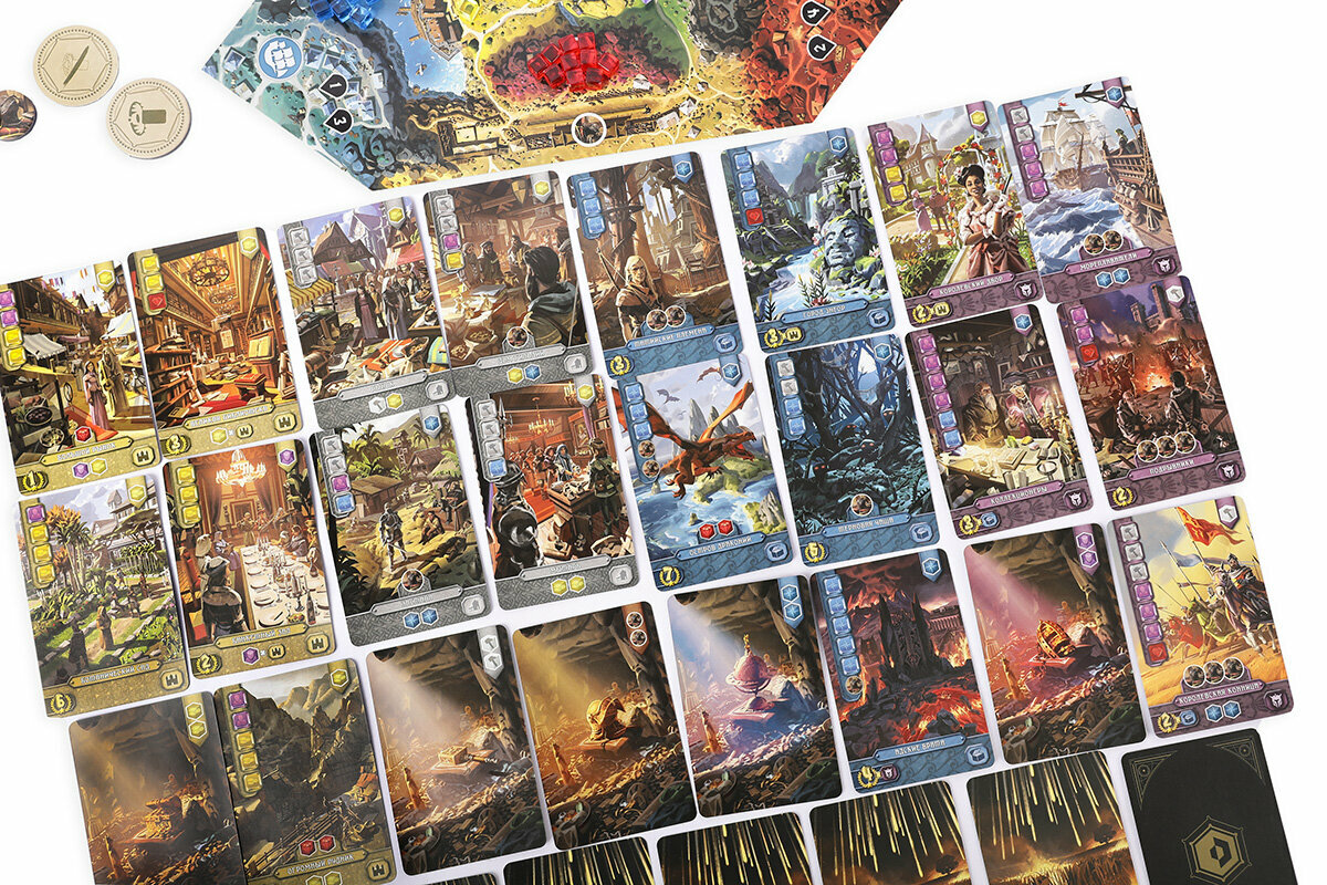 3) Производство. В определенной последовательности игроки производят новые ресурсы в своих герцогствах, в зависимости от имеющихся карт. Полученные ресурсы можно использовать в будущем для постройки новых карт. Игра заканчивается в конце 4-го раунда, победитель определяется по количеству набранных очков. Условия модулей могут влиять на условия определения победителей.