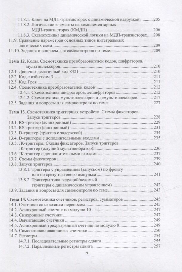 на скорости- бросилось в глаза :стр 210 , последний абзац "000110000110001 в коде 8421" следует читать как "000110001110001 в коде 8421". Очень многие темы не раскрыты к ПОНИМАНИЮ! только к заучиванию, ну или как быстренькая шпаргалка к напоминанию. Есть нестыковки: к примеру гл.12.2 " код с избытком 3" и 12.3 "код Грэя с табл 12.4. Таблицы истинности значений вход/выходов, активности по фронту или спаду импульса несколько спорны и путаны. Лучше бы взять из советских учебников, книг ( к примеру справочники Шило) и приучать студентов к корректности терминов, обозначений и унификации чтений документации именно по ГОСТ нашей страны, а не конкретного автора, эпох и буржуйских государств. Больше походит на краткий конспект лекций студенту техникума. В списке литературы отсылка к популярной иностранной литературе. Хоровиц и Хилл, конечно бестселлер, но переведен он на русский крайне коряво, а переиздания с ошибками шли, на память- лучше брать было издания с 86 до 93 года .Титце и Шенк- зачетно, но их труд нельзя сокращать, там все взаимосвязано шло, однако учитывалось,что параллельно Вы изучаете высшую математику. Критерии устойчивости систем и коды, ТАУ, это лучше брать со справочников под ред. Кривицкого ( вполне достойные два труда хотя эти справочники , они больше похожи на учебники). В остальном Автор ссылается во всей литературе сам на себя. Нарциссизм вреден. В общем винегрет из всего и вся. Как напоминалка ( нечто вроде справочника инженера у которого есть практиканты или преподавателя) вполне себе достойно. Как учебный материал- сильно урезано и сумбурно. НО! Я не знаю насколько сейчас изменены требования к обучению . Сужу по своей альма матер -университету эпохи 90х...т.е. то, что мы читали, ну и по своему времени преподавания- началу 200х. Иллюстрации, -есть претензии. Много нечитаемых обозначений элементов на рисунках. Скриншоты с workbench ( кстати - не самый лучший симулятор, уж мультислим брать или протэус) обрезаны и скорее книгу преподносят как курсовой проект студента. Глазу тяжело эти обрезки считывать. Отсутствует отдельная глава Булева алгебра, что вообще вызывает удивление, т.к. это основа в работе со схемотехникой цифровой логики. Но тем не менее операции в примерах присутствуют. А как и почему и откуда они получаются- студент должен догадаться или искать другую книгу Галочкина за другие 2000р. В общем как карманный справочник-вполне. Цифровая часть схемотехники- уж лучше взять издания Шило. Аналоговая- спорно. Гусев, Жеребцов для понимания, а данная книга -для заучивания и сдать зачет. Впечатления двоякие. Недостаточно, точнее вообще нет небольших примеров в расчетах. Для закрепления. В очередной раз вопросы к издателям: тяжел мелкий шрифт. Не принимайте такое в печать. В общем , если это попытка повторить Титце,Шенка,Хоровица,Хилли и прилепить ее к современному стандарту обучения... то стране трындец..не пойдет однозначно. Переработка нужна основательная. На всякий случай оставлю в своей личной библиотеке, иногда племянникам быстренько как шпаргалку сфотографировать и отослать материал. Хотя и не советую. В очередной раз пишу: авторы, Вы уж разберитесь ...в себе...или Вы указываете обозначения и термины по ЕСКД,ГОСТ СССР и РФ, или по иностранным стандартам обозначения. Вы же преподаватели, мы кого готовим ? Зачем эти путаницы: часть схем по ИСО, часть по ЕСКД. Откуда карт