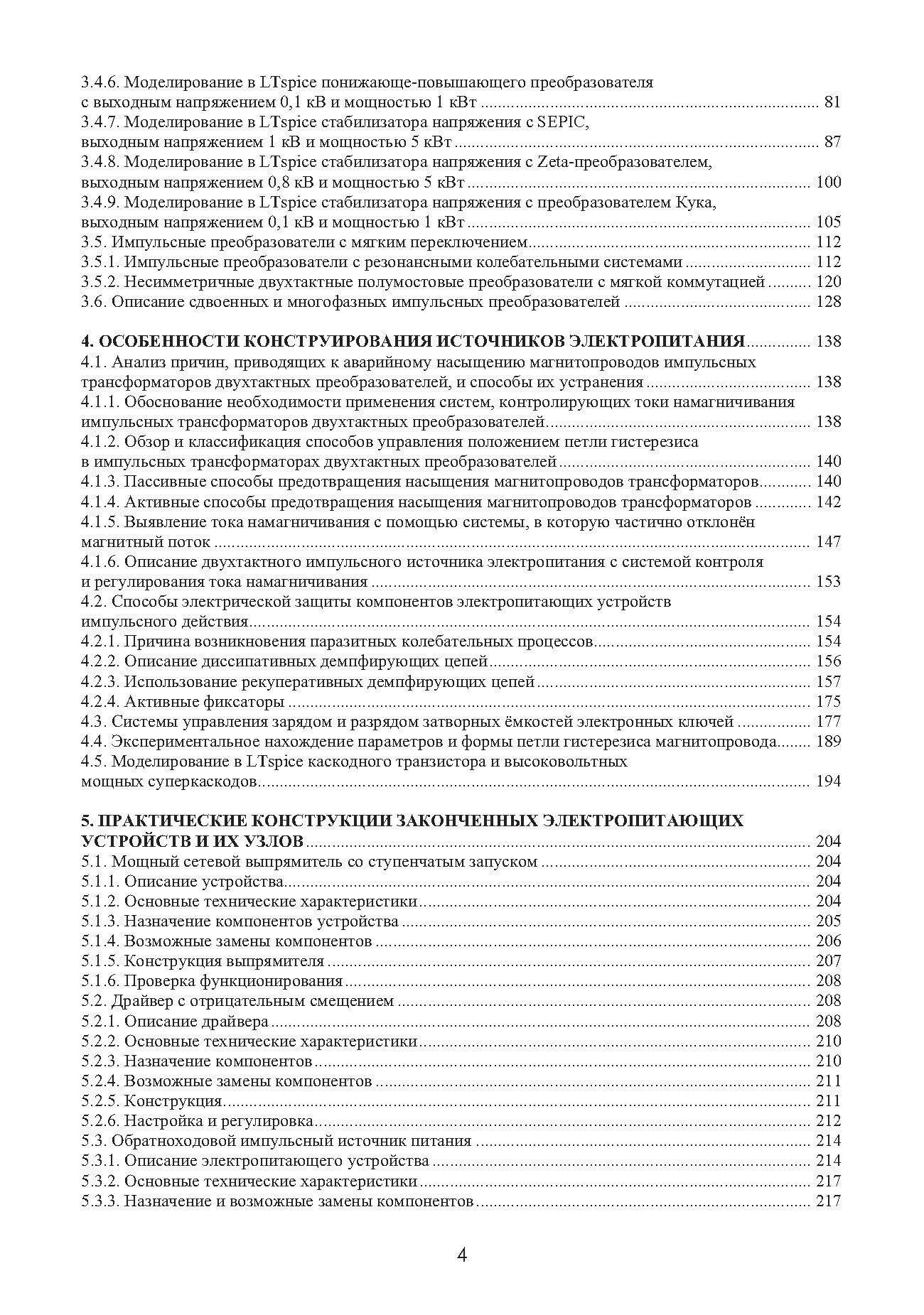 Приведены схемотехнические реализации и изложены теоретические аспекты конструирования, изготовления и настройки импульсных источников электропитания. Даны систематизированные сведения по современным силовым преобразователям. Описаны многочисленные спроектированные и изготовленные автором практические конструкции законченных электропитающих устройств различной сложности и мощности, их блоков, результаты экспериментально-исследовательских работ. Показаны модели, созданные в симуляторе LTspice. Проанализированы причины уменьшения энергетических параметров электропитающих устройств.
