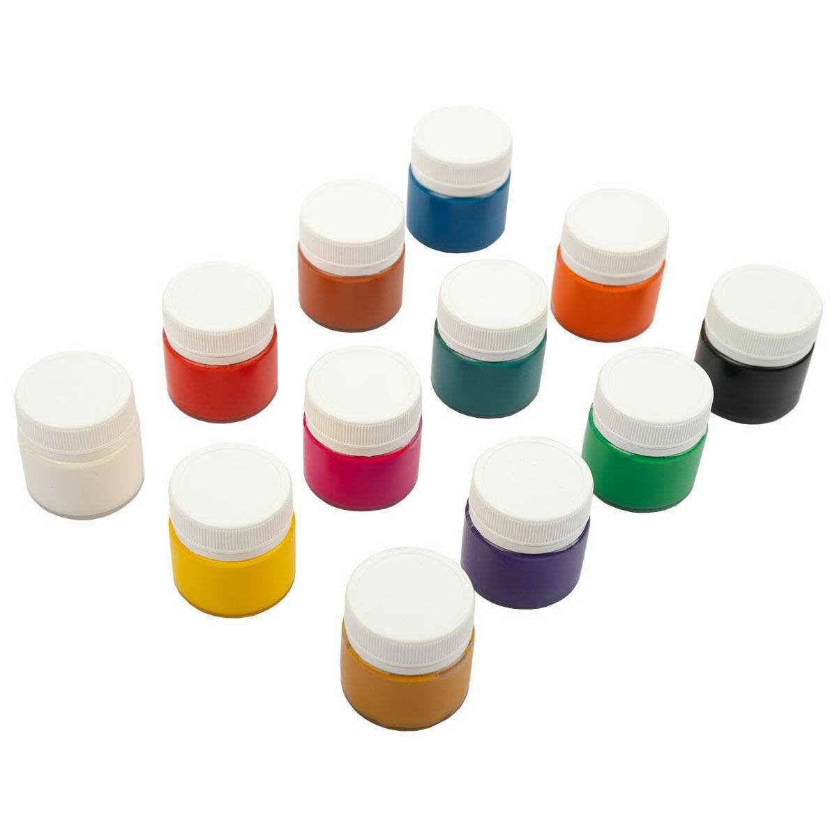 Состав набора: белый, желтый, охра, оранжевый, красный, розовый, фиолетовый, синий, бирюзовый, зеленый, коричневый, черный.
