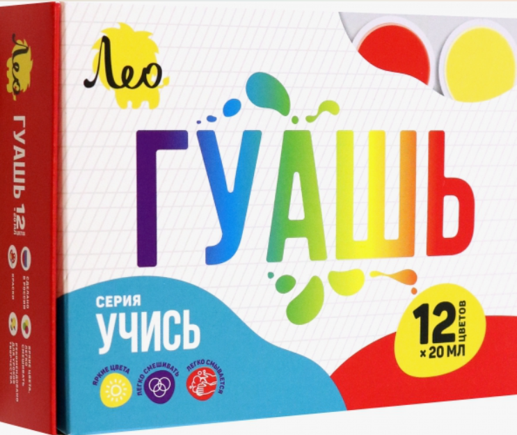Гуашь классическая ТМ Лео серии Учись производится на основе только качественных компонентов и пигментов. Традиционная рецептура обеспечивает сохранение отличительных качеств этих красок - густоты, укрывистости и матовости.