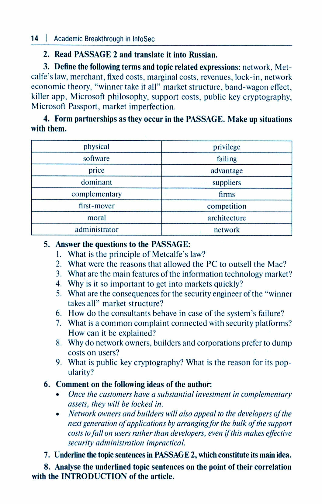 Настоящий учебник предназначен для студентов уровня магистратуры, старших курсов специалитета и аспирантов, изучающих английский язык для специальных целей на уровне С1 по Общеевропейской шкале языковых компетенций. Учебник может быть использован при работе со студентами, обучающимися по специальностям и направлениям подготовки 10.04.01 "Информационная безопасность", 39.04.01 "Социология", 40.04.01 "Юриспруденция", 41.04.04 "Политология", 41.04.05 "Международные отношения", 42.04.02 "Журналистика", 44.04.02 "Психолого-педагогическое образование", 44.04.01 "Педагогика", 45.04.02 "Лингвистика", 51.04.06 "Библиотечно-информационная деятельность", 40.05.01 "Правовое обеспечение национальной безопасности", 40.05.02 "Правоохранительная деятельность", 10.06.01 "Информационная безопасность", 44.06.01 "Образование и педагогические науки", 41.06.01 "Политические науки и регионоведение", 39.06.01 "Социологические науки".