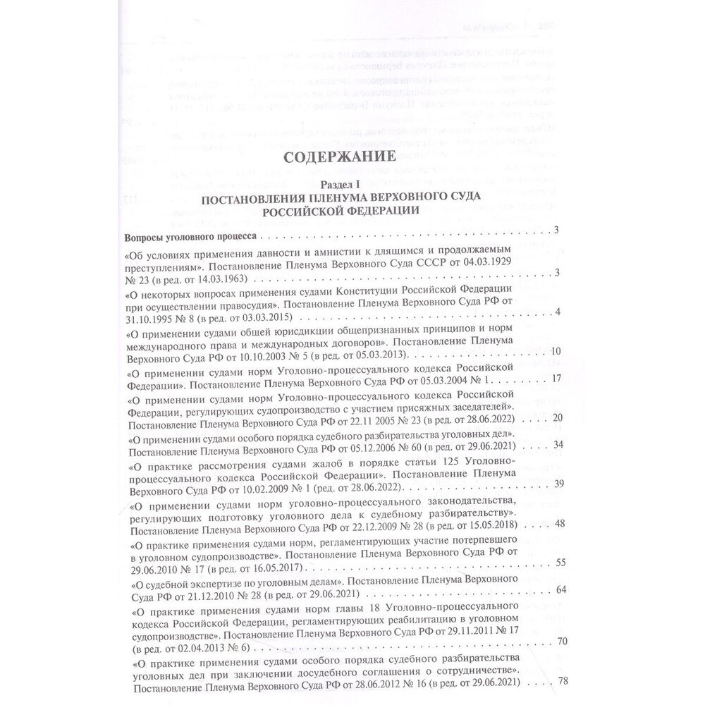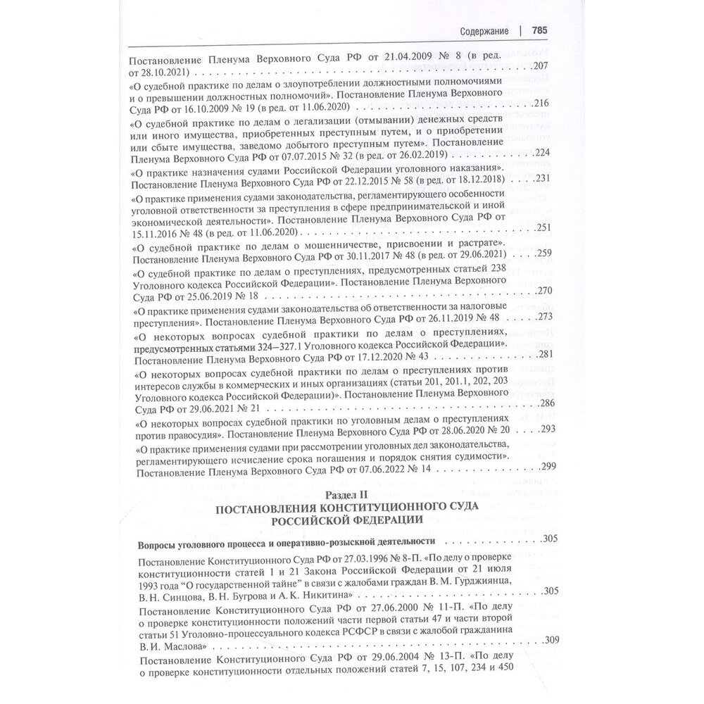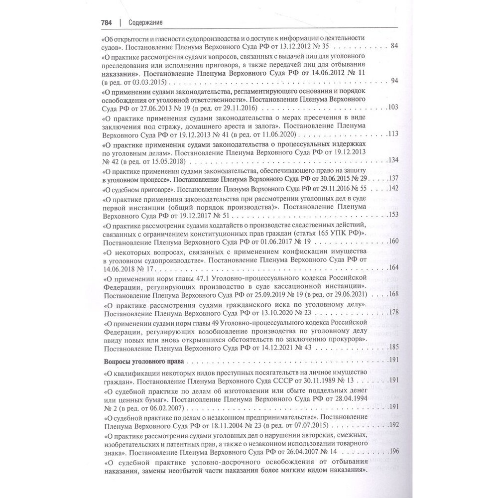В сборник вошли наиболее актуальные действующие постановления Пленума Верховного Суда Российской Федерации за период с 1929 по 2022 г., содержащие разъяснения по применению норм материального и процессуального уголовного законодательства, а также в сфере оперативно-розыскной деятельности, с внесенными изменениями и дополнениями в соответствии с законодательством Российской Федерации, а также решения Конституционного Суда Российской Федерации по данным вопросам.