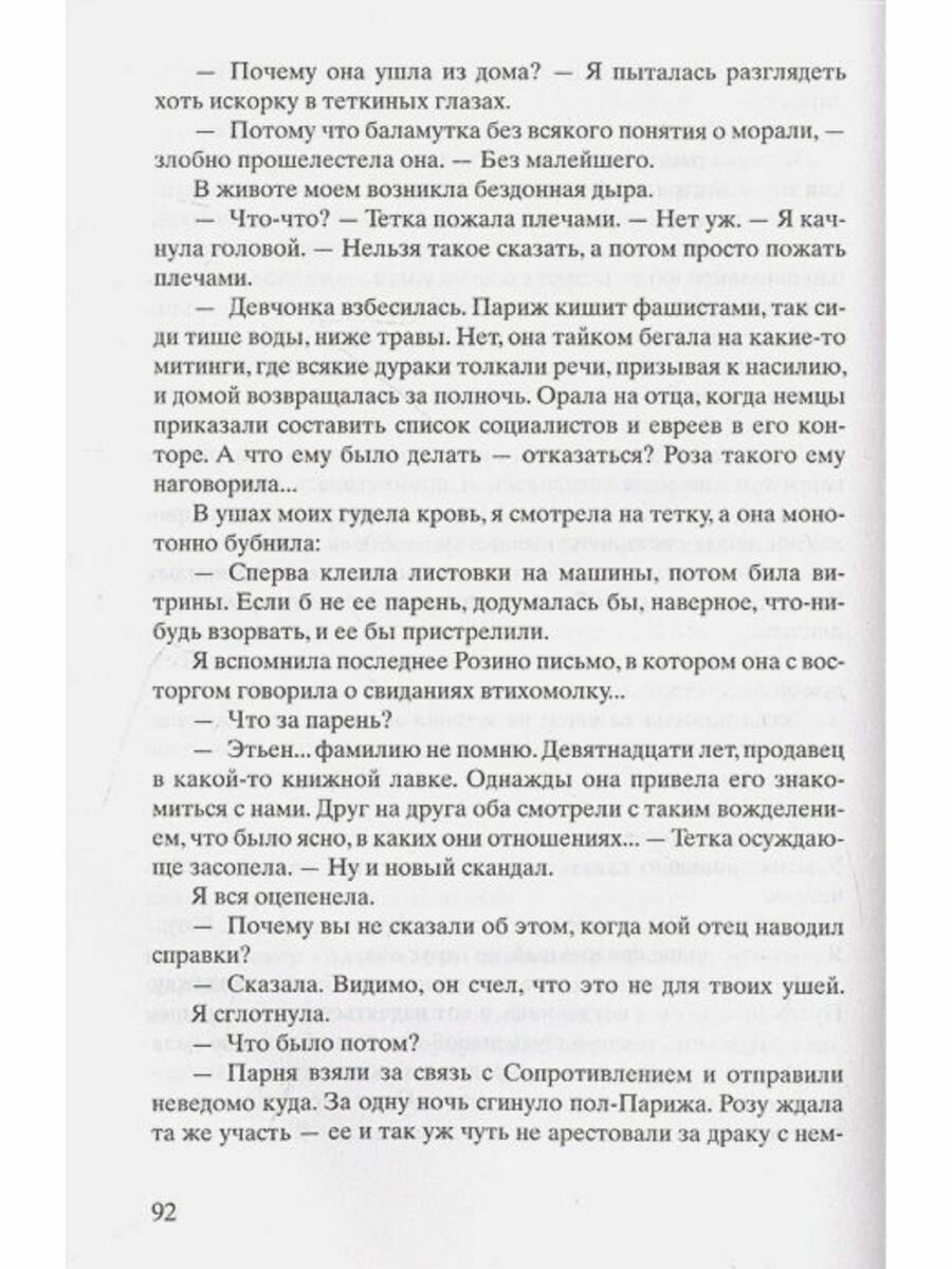 Потрясающая книга в которой можно утонуть! Очень захватывающий сюжет, местами пробирает волнение за героев. Советую к прочтению всем, кто читал « Bella Германия», « Мальчик в полосатой пижаме», «Мальчик на вершине горы», «Последствия» и другие, связанные с нацисткой Германией и жизнью людей в военные годы.
