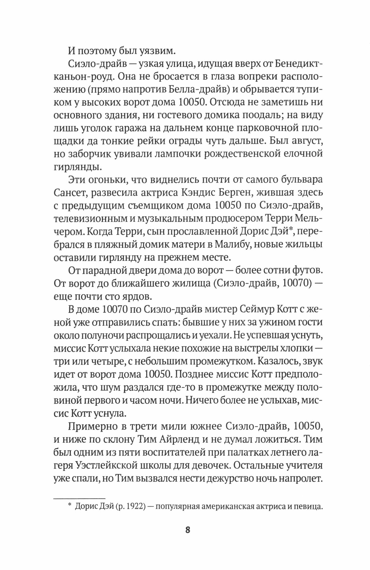 Сначала читать сложновато, потому что автор (он же государственный обвинитель в деле \"Семьи\" Чарли Мэнсона) преподносит голую информацию из полицейских отчётов, но потом, когда история начинается от первого лица, оторваться просто невозможно. Тебя переполняет ужас и злость. Автор показывает некую несостоятельность американской полиции: копы теряли улики, игнорировали показания свидетелей, да в общем-то и раскрыто это дело, только потому что убийцы сами много болтали. Жутко и от зверств убийц, и от отсутствия справедливости. Книга страшнее любых выдуманных ужасов, потому что ты понимаешь, что всё это происходило в реальности, с реальными людьми. -