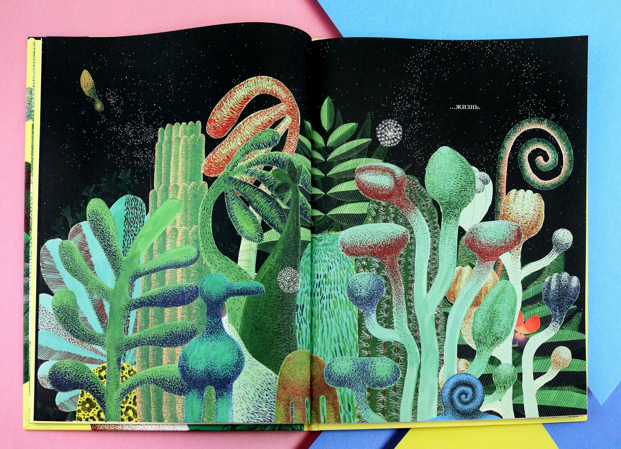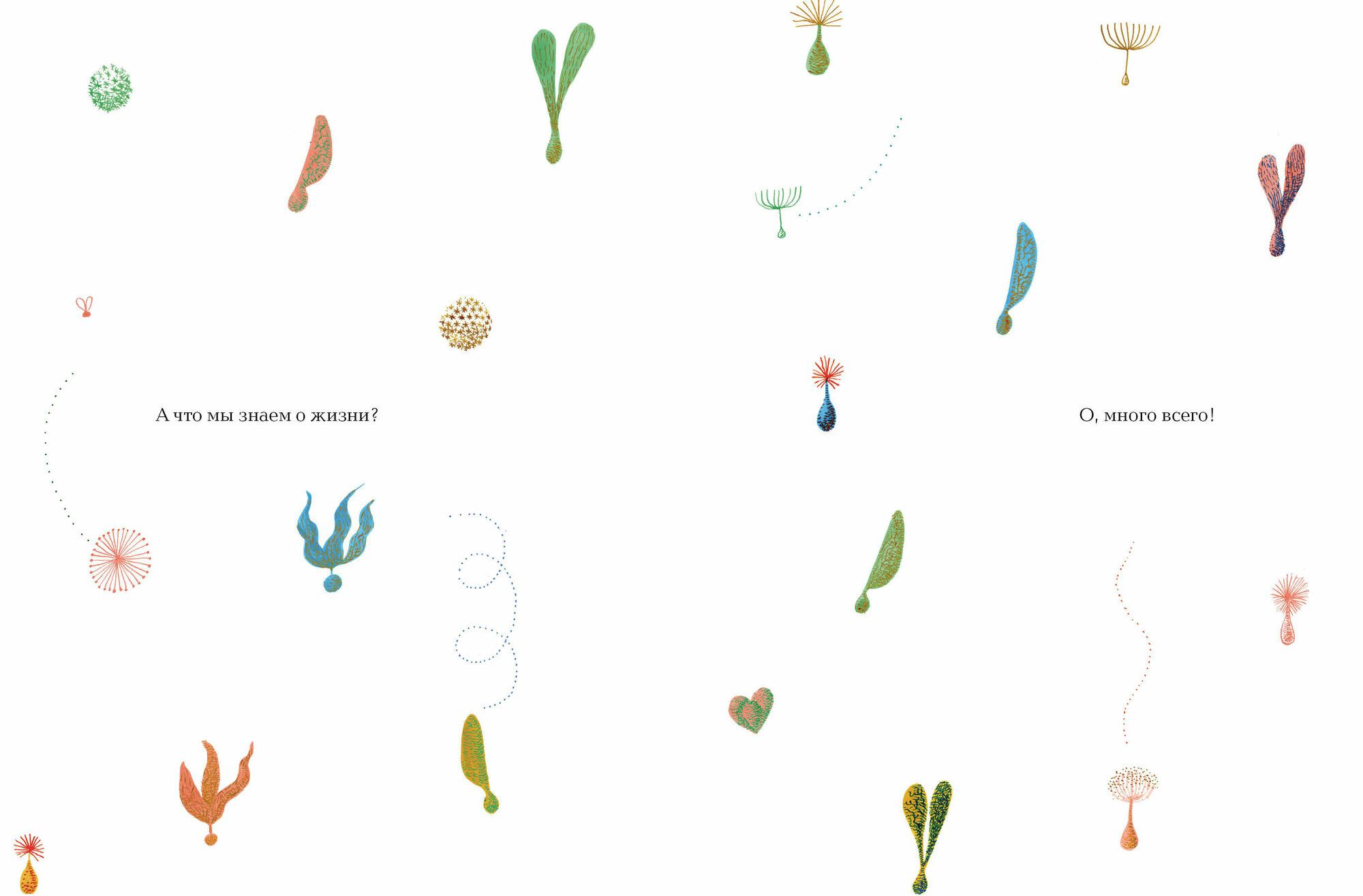 Кристиан Борстлап сделал уникальную по своей сути вещь - книжку-картинку про жизнь. История получилась лаконичная, стильная и универсальная. Своеобразное послание всем и каждому: детям, которым понравится рассматривать причудливые иллюстрации, взрослым, ценящим юмор и мудрость. Книгу можно долго рассматривать, раз за разом находя что-то новое, точно как ученые постоянно открывают новые формы жизни. Эта книга - эстетически прекрасное напоминание о том, что всё в жизни и все связаны друг с другом.