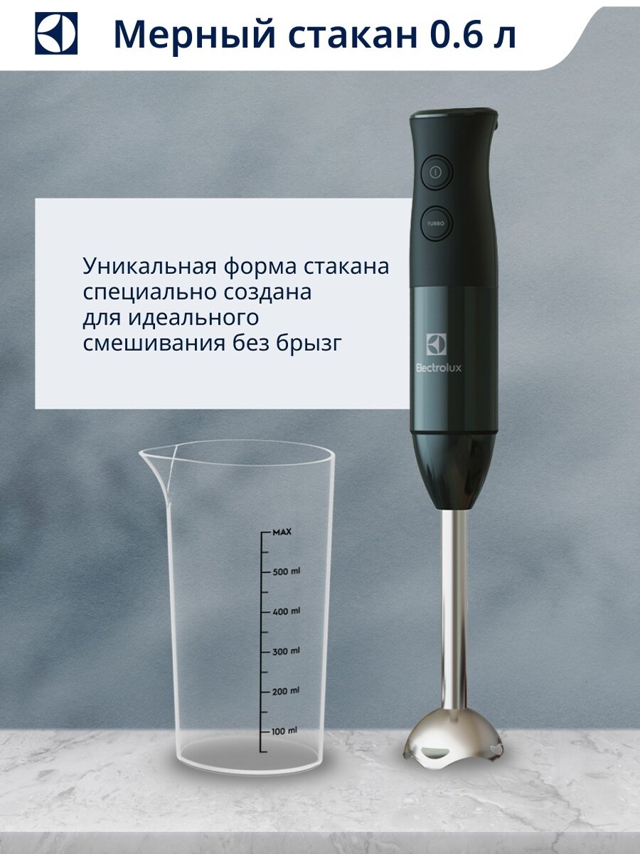 Ручной блендер Electrolux E3HB1-4GG мощностью 400 Вт на долгие годы станет одним из ваших главных помощников на кухне. Он обладает технологией TruFlow, которая объединила особую форму лезвий с уникальной смешивающей основой. За счет этого прибор безупречно измельчает любые ингредиенты. Модель имеет 1 скорость работы, но при необходимости интенсивность можно форсировать за счет турборежима. Блендер Electrolux E3HB1-4GG не только расширит ваши возможности на кухне, но и сэкономит много времени при выполнении всевозможных кухонных операций. Объем пластикового мерного стакана составляет 0.6 л. Помещенные в него ингредиенты не разбрызгиваются, даже если имеют жидкую консистенцию.