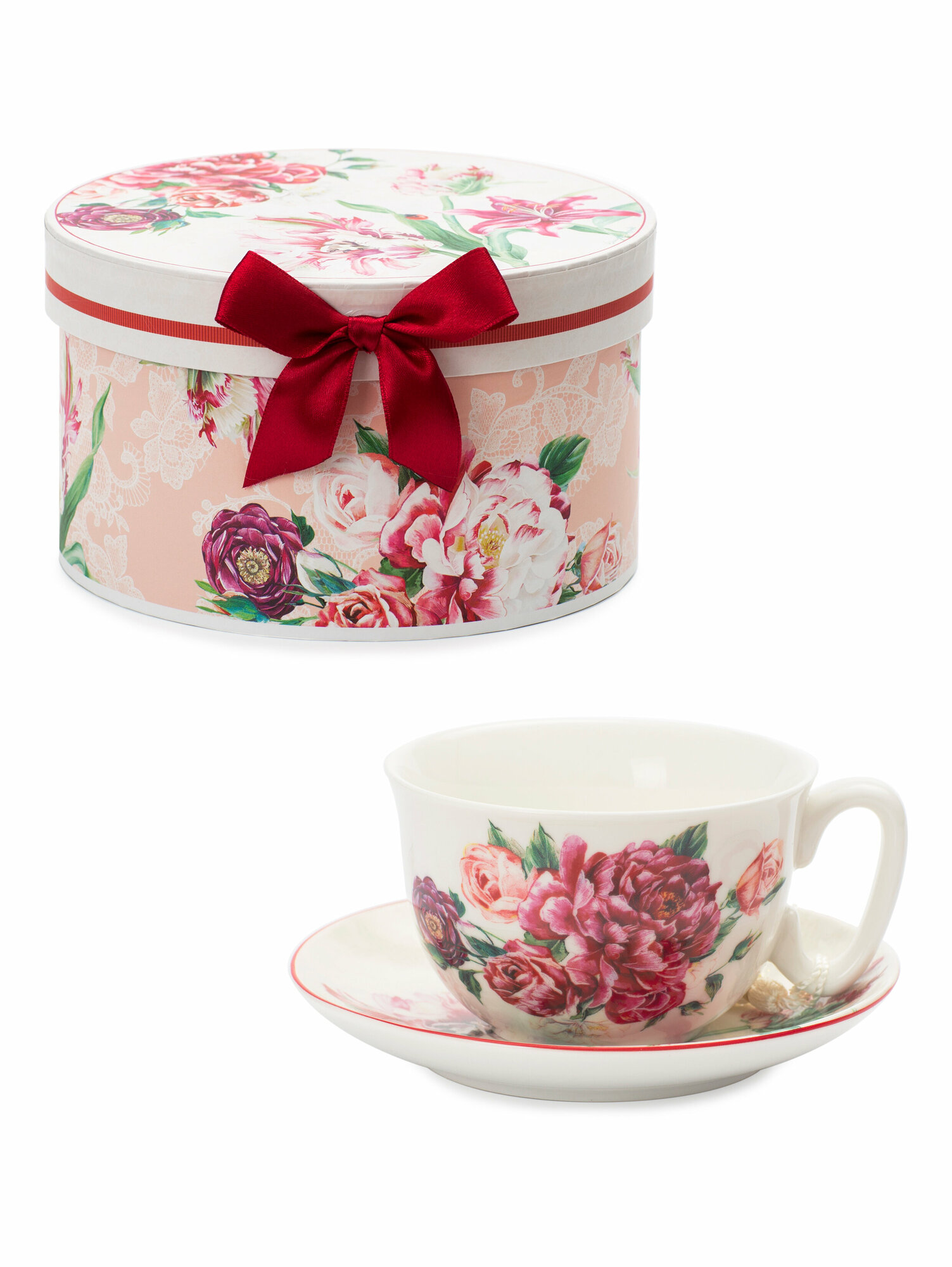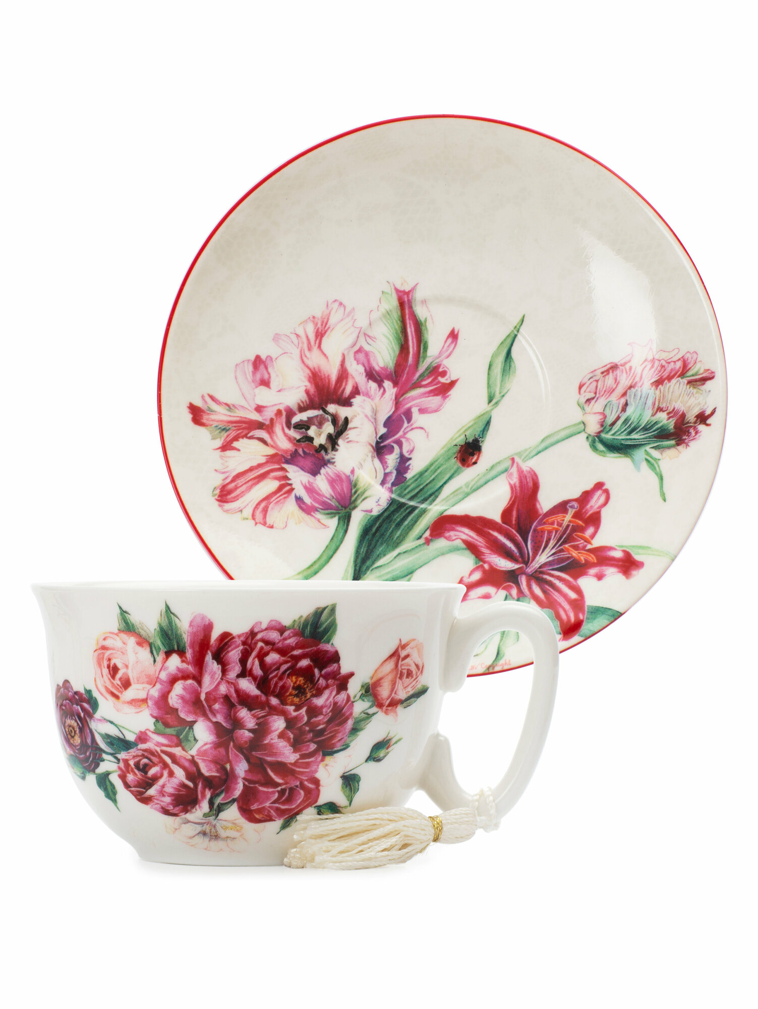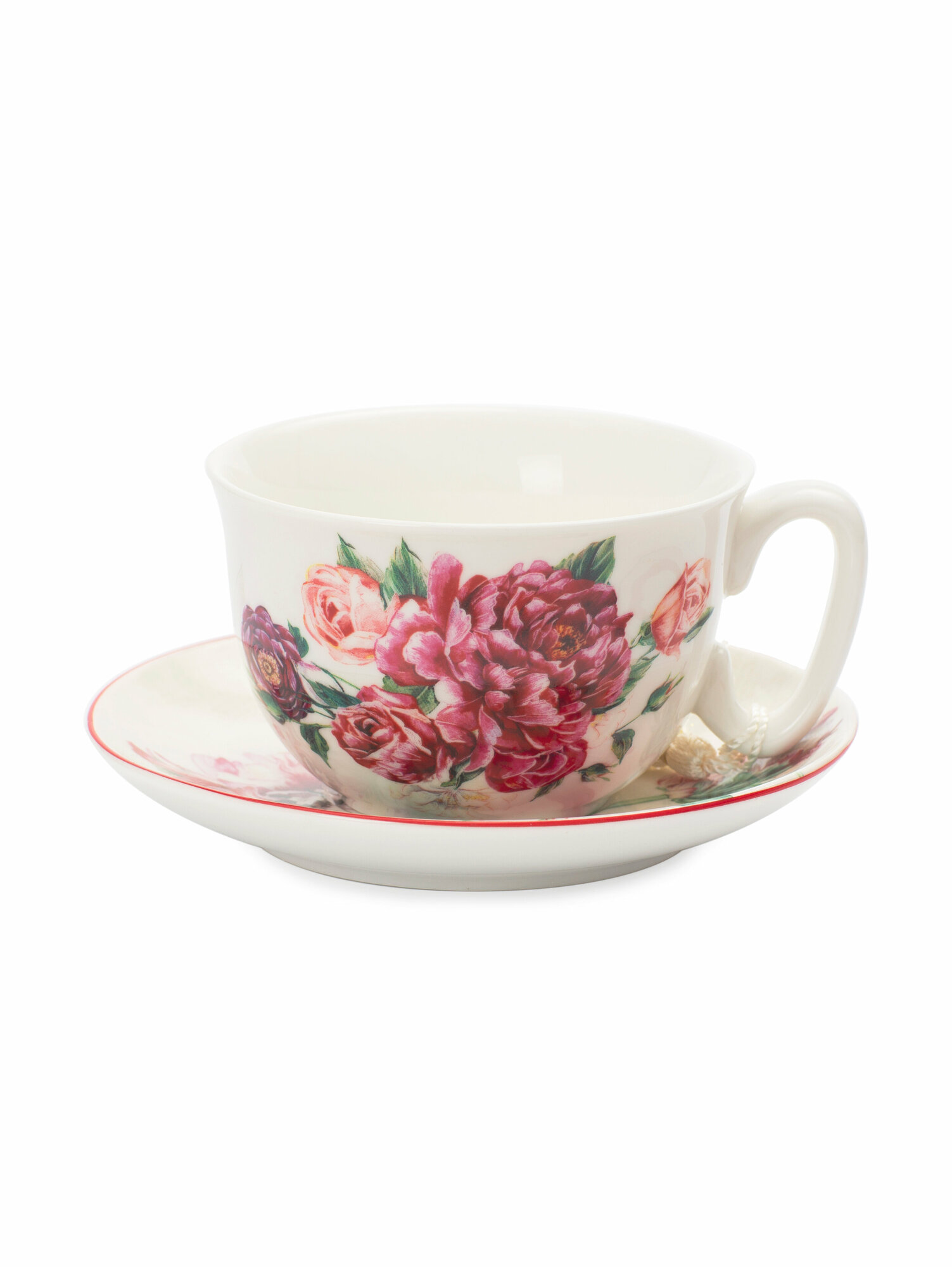 чашка с блюдцем SIJ Red Blossom 300мл фарфор (GC2307)