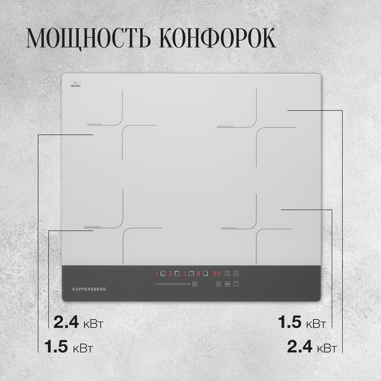 При необходимости нагревания большого объема воды или быстрого раскаливания сковороды функция Booster станет просто незаменимой