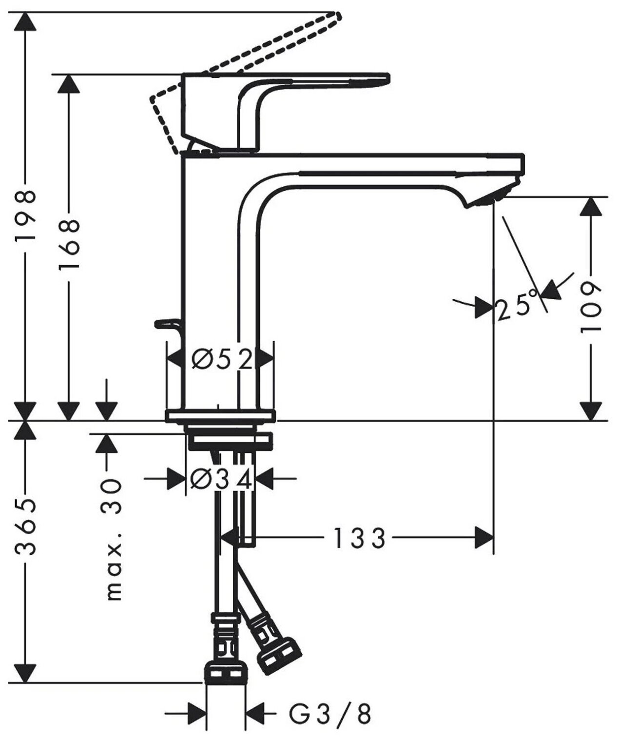 Смеситель для раковины Hansgrohe Rebris 72583000. выступ: 169мм. Высота излива: 242мм. Тип струи: обычная струя. Максимальный расход воды при 3 барах: 5 л/мин. Керамический узел смешивания. Регулируемое ограничение температуры, подходит для проточных водонагревателей. Вид соединения: соединительные шланги G . При включении воды из центрального положения рукоятки подается только холодная вода