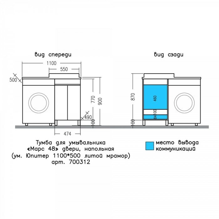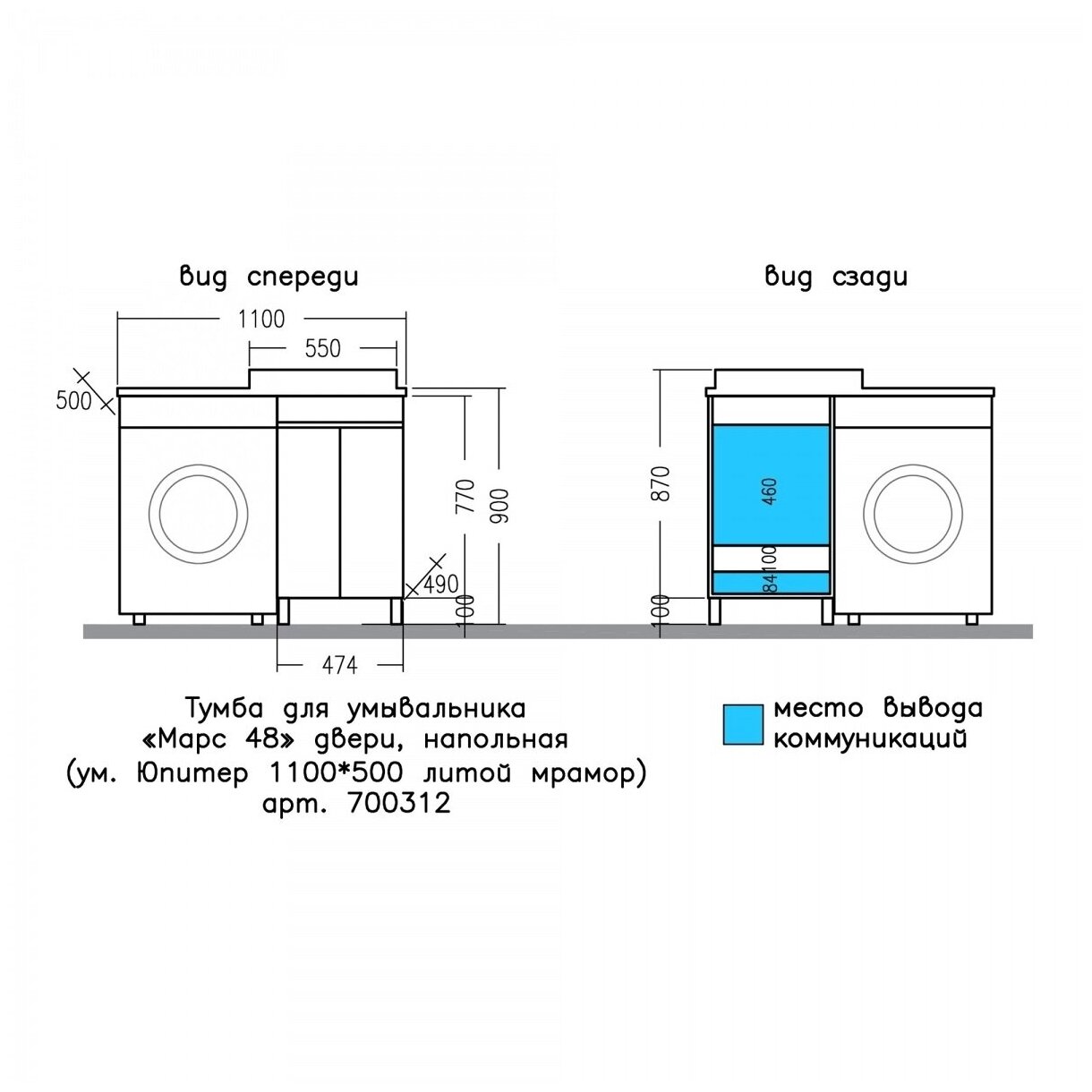 - Габариты тумбы (ШхВхГ): 474х870х490 мм.