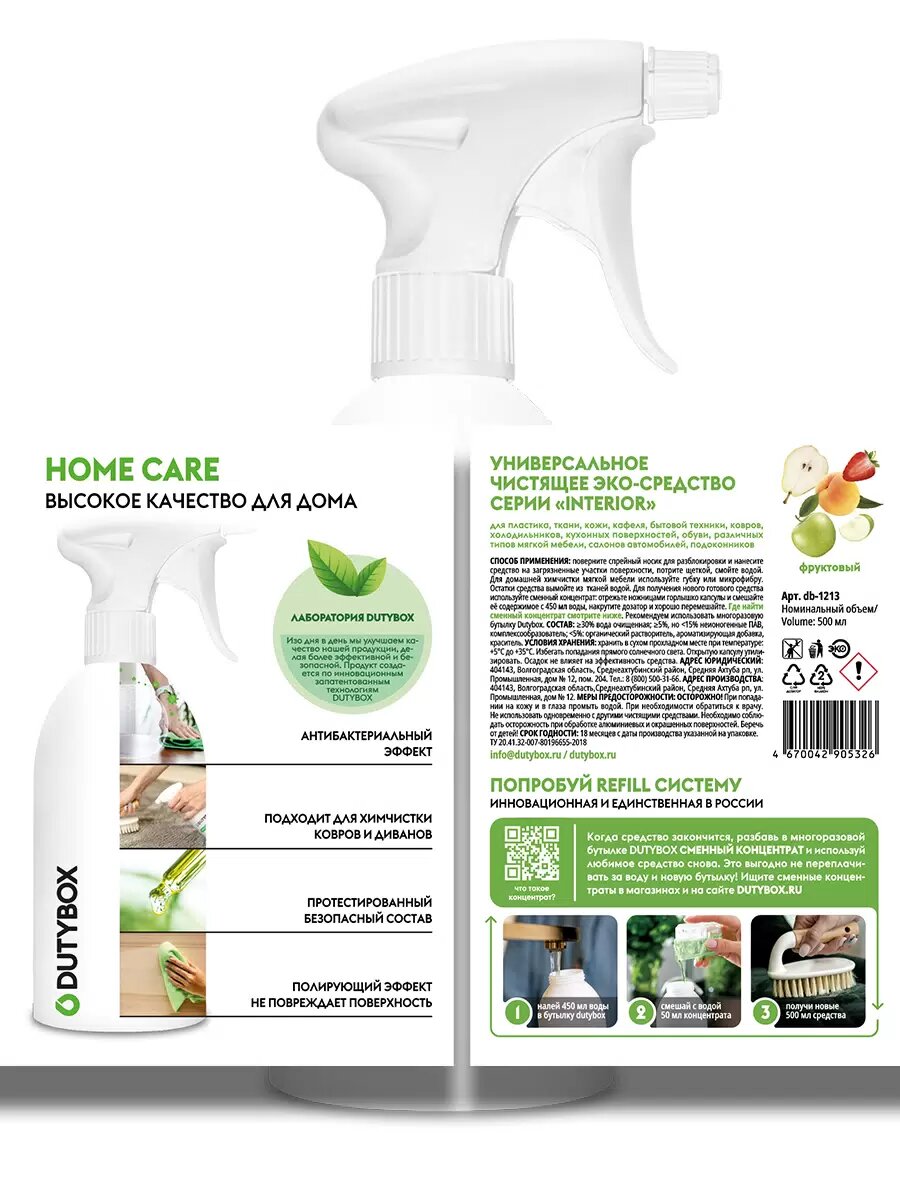 Универсальное моющее средство для пластика мягкой мебели ковров диванов 500 мл. Dutybox Interior